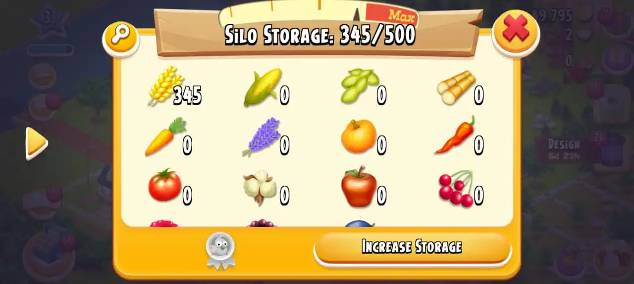 LEVEL 31 | 1000 Barn Storage | Fully Filled with Land Tools | 500 Silo Storage | 49K+ Coins & 2 Diamonds | Instant Delivery