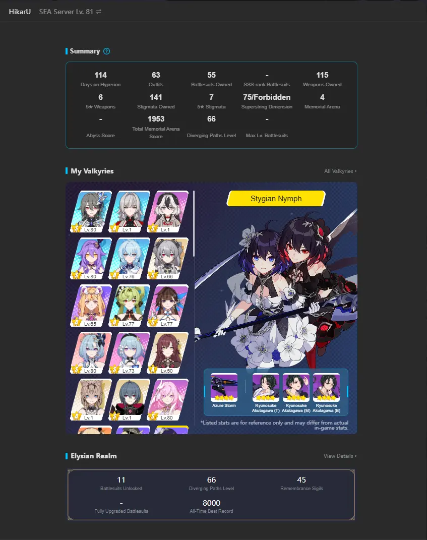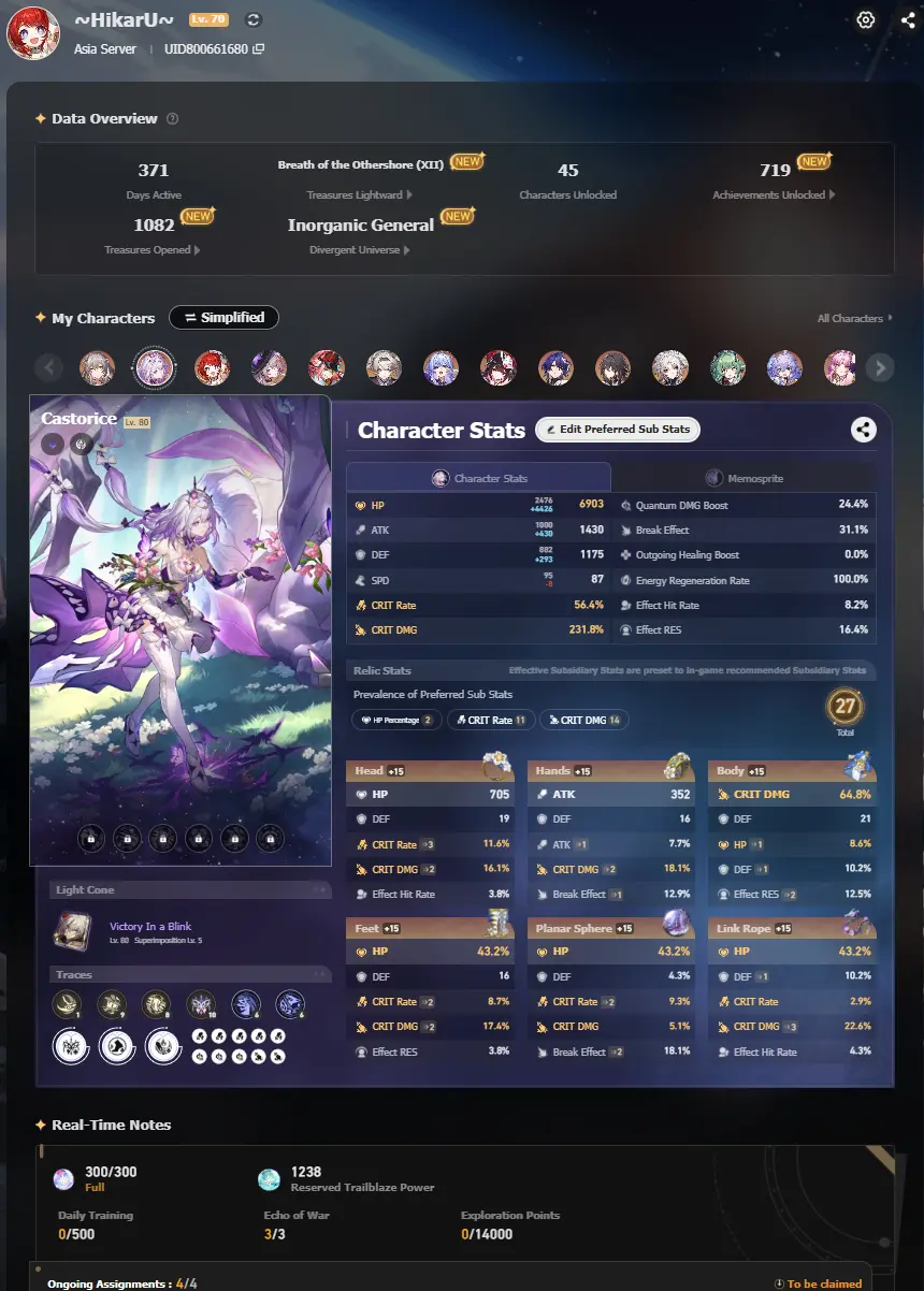ASIA | AR 70 | 45 characters · 23 legendary | Castorice + Firefly , Rappa , Feixiao and others