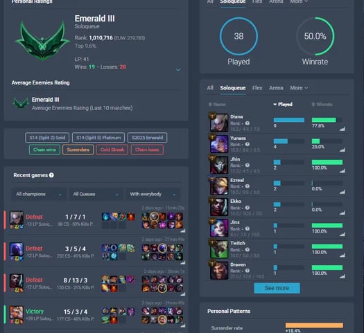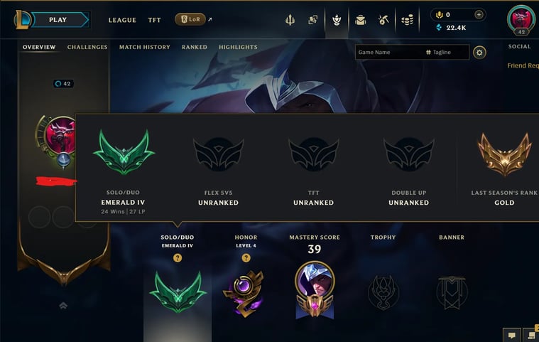Emerald занимает интересное место в рейтинге. Это действительно уровень выше среднего, который позволяет вам оказаться в топ-10% игроков вашего региона, но при этом он ещё не достиг зоны потери рейтинга, которая начинается с уровня Diamond. Такое сочетание делает аккаунты Emerald в LoL практичным выбором для игроков, ищущих качественную соревновательную среду без дополнительного стресса от ежедневной потери LP из-за неактивности. Достижение Emerald через регулярную игру — задача не из простых. Восхождение через Platinum к Emerald — это этап, где ранги начинают сужаться, и с каждым уровнем в подразделении становится всё меньше игроков.