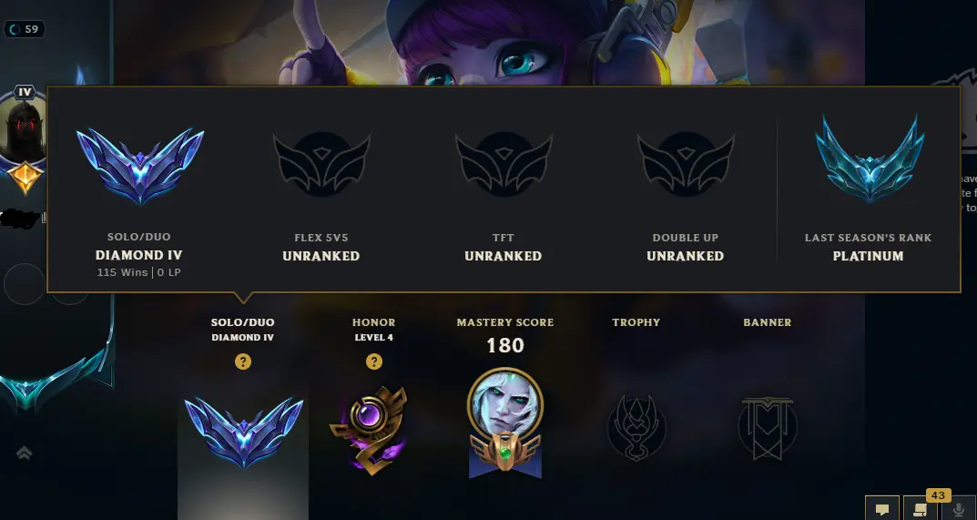 🚀【EUW】✨ Diamond IV ⚡ Champs: 71 ⸱ Skins: 17 🌊 BE: 827 ⚡ 58% WR