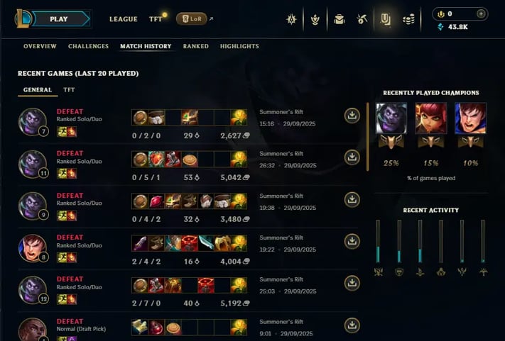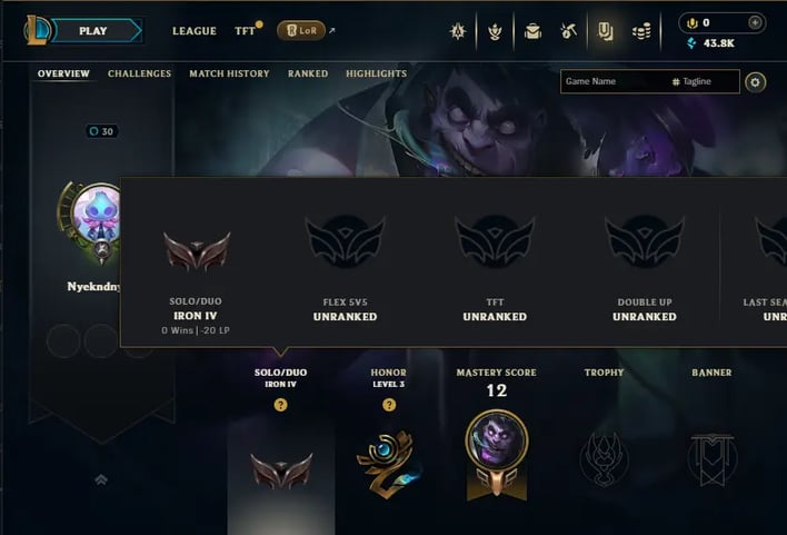 Top seller🥇[NA][SE15]⭐ IRON 2 [0LP] | 0W-5L 20 Champs 🔥 | Hand-Deranked | Unverified Email ✨ | Iron 4 MMR