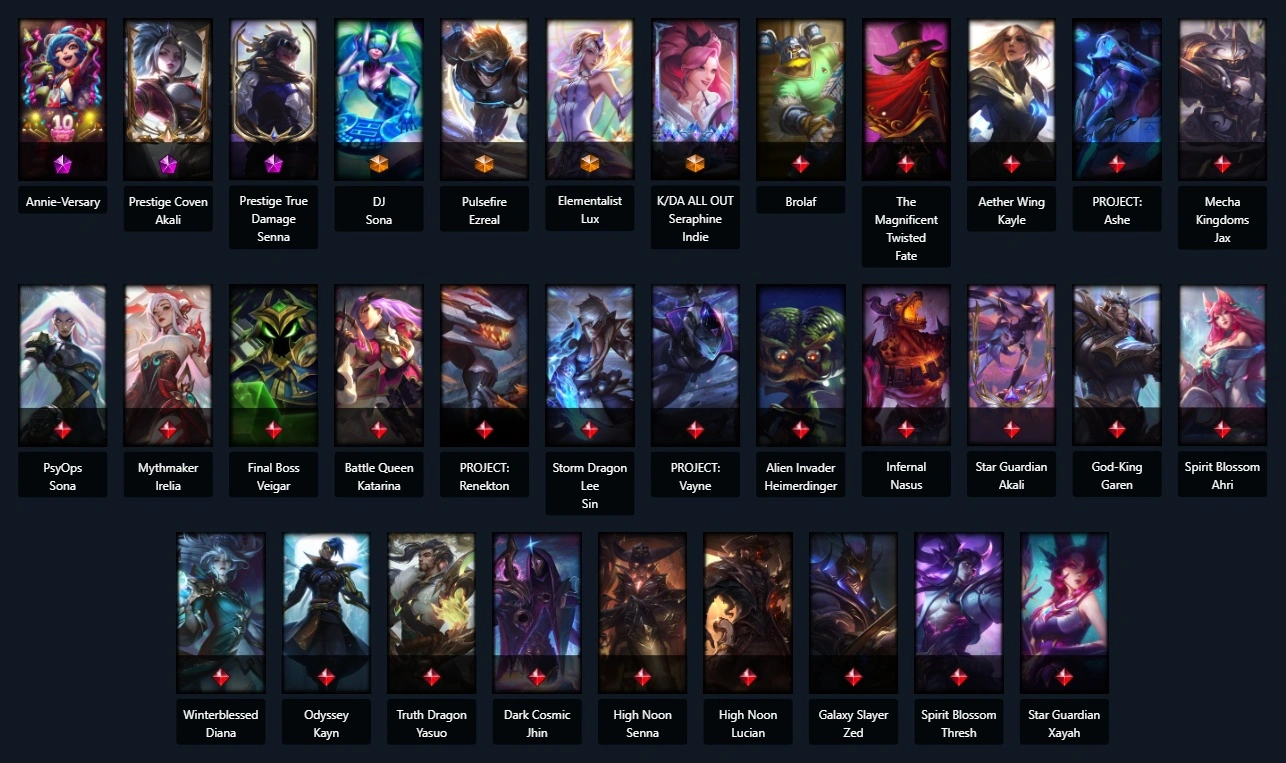 UnRanked┃300 skins┃169 Champs┃(3 Mythic) Prestige True Damage Senna Prestige Coven Akali Star Guardian Xayah Mythmaker Irelia PsyOps Sona God-King Garen Winterblessed Diana