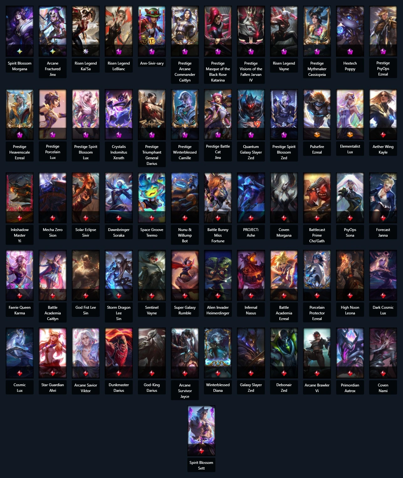 UnRanked┃394 skins┃171 Champs┃(18 Mythic) Arcane Fractured Jinx Spirit Blossom Morgana Arcane Survivor Jayce Risen Legend Vayne Prestige Spirit Blossom Lux Quantum Galaxy Slayer Zed Prestige Winterblessed Camille