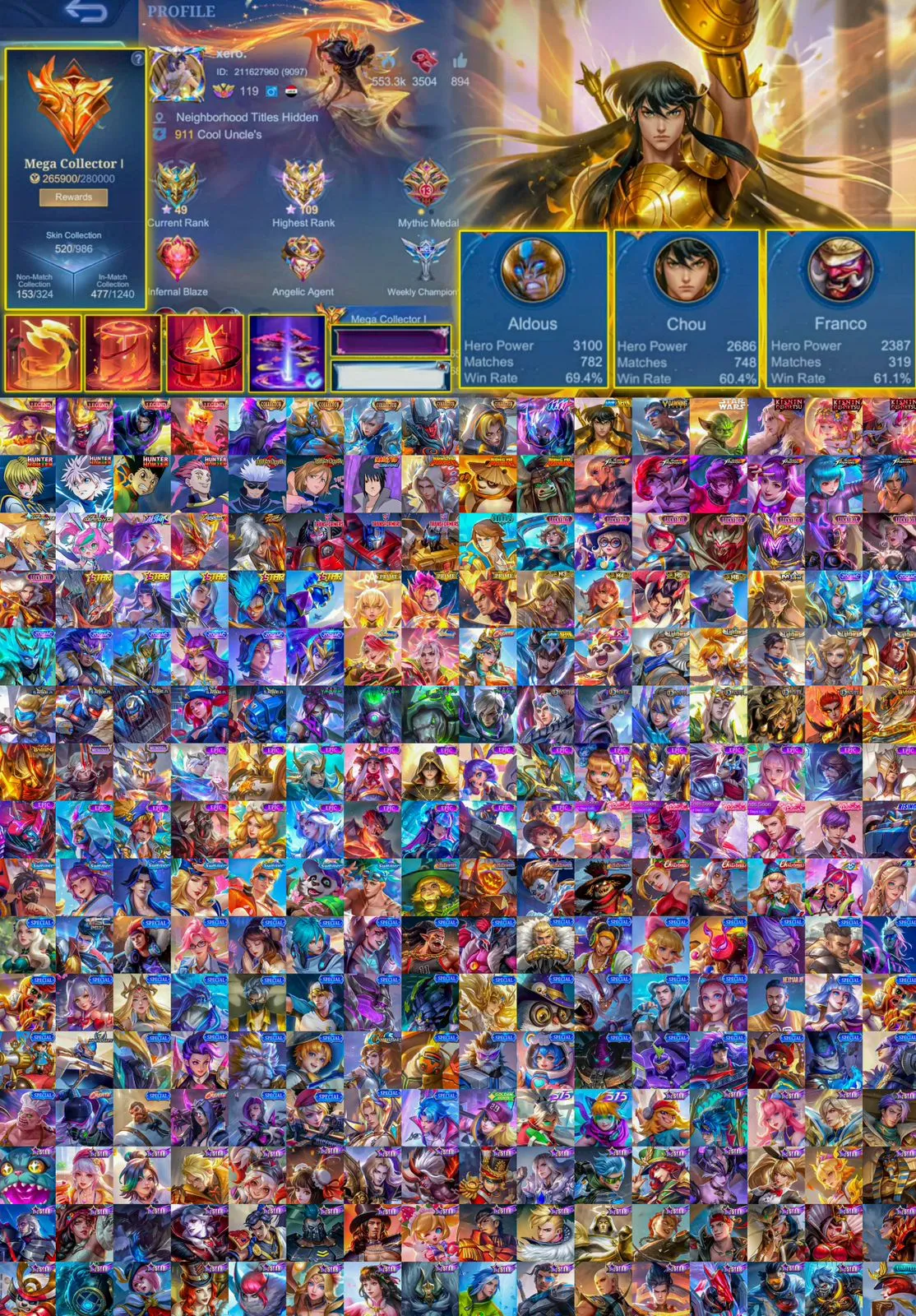 🌟Almost world collector 💥 || Hunter x Hunter set 🔥|| Kung fu Pandaset ☠️|| Kishin set 🎉|| 4x Legend || 5x Collec || 32 collab skins || instant delivery