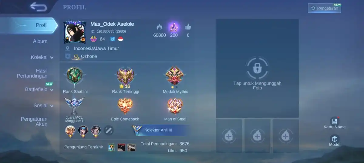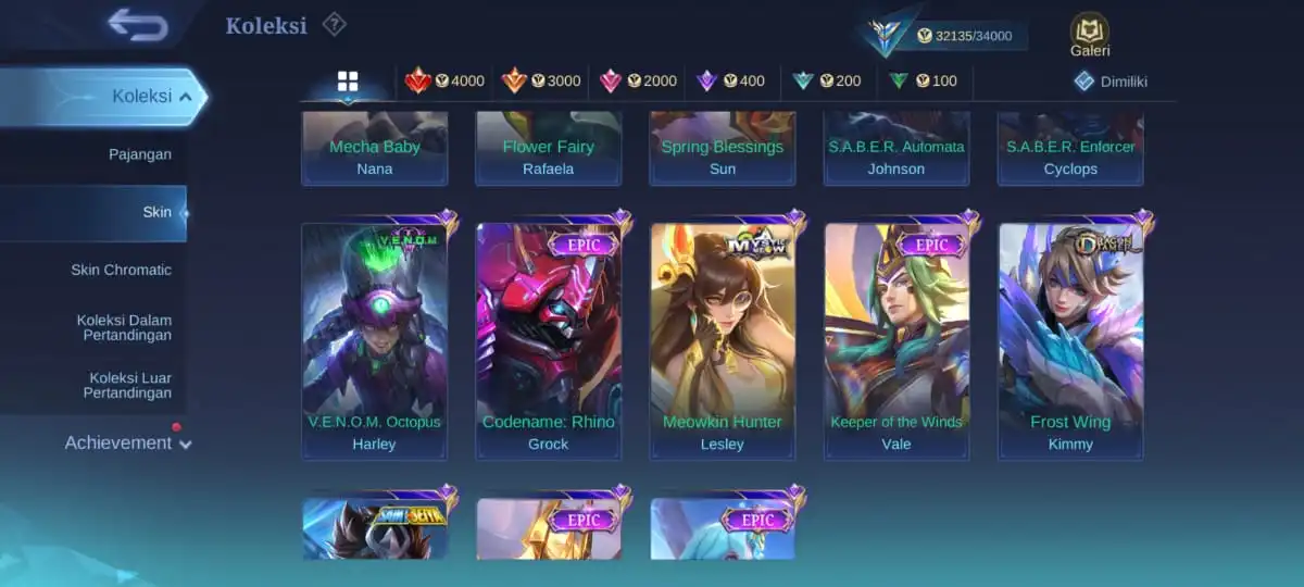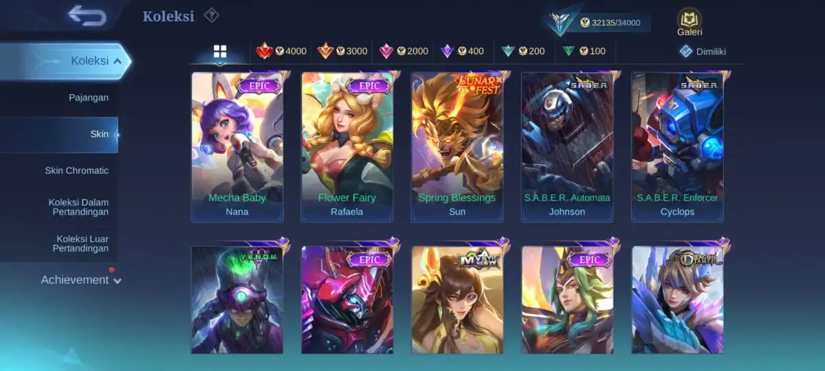 BEST MEGA DEAL✨HERO 94✨SKIN 169✨EMBLEM MAX ✨BP 558000+✨TICKET 35800+✨KARINA KOF✨SUN LUNAR✨BADANG SEIYA ✨VALE KEEPER ✨TERIZLA FLAMES✨DRAGON KIMY✨GROCK CODENAME✨EPIK 6✨SPECIAL 23✨SAFE ACC✨INSTAN DELIVERY
