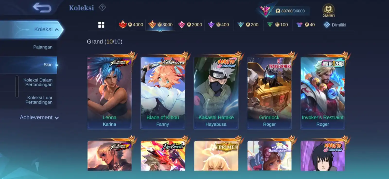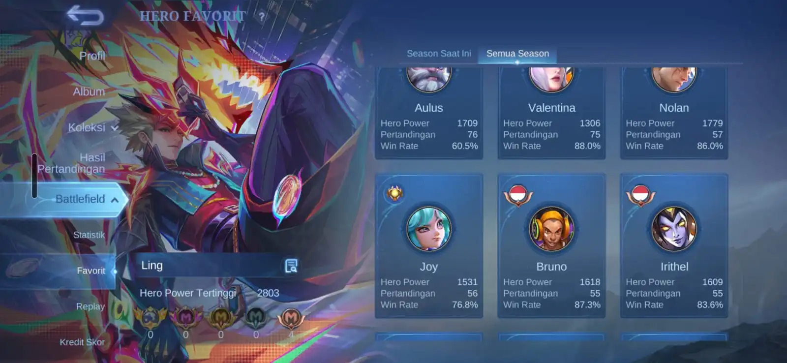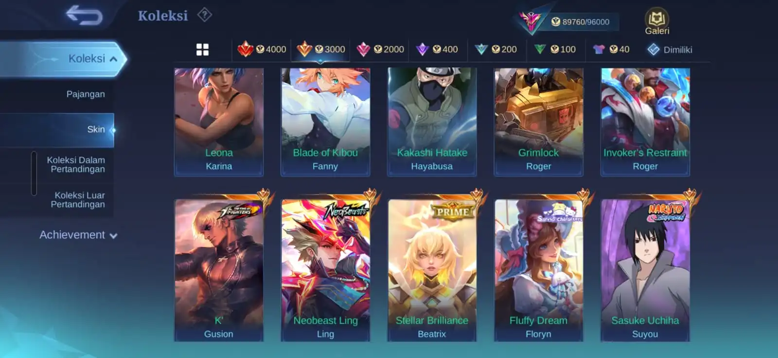 Ex Immortal 121 / Win Rate 70-90 % / Skins 250 [ Legend Granger ] Aspirants Fanny / Metrozero Roger / Neobeast Ling / Sasuke Suyou x Kakashi Hayabusa / KOF Gusion / Sanrio Floryn / Recall Onic PH x Recall Metrozero