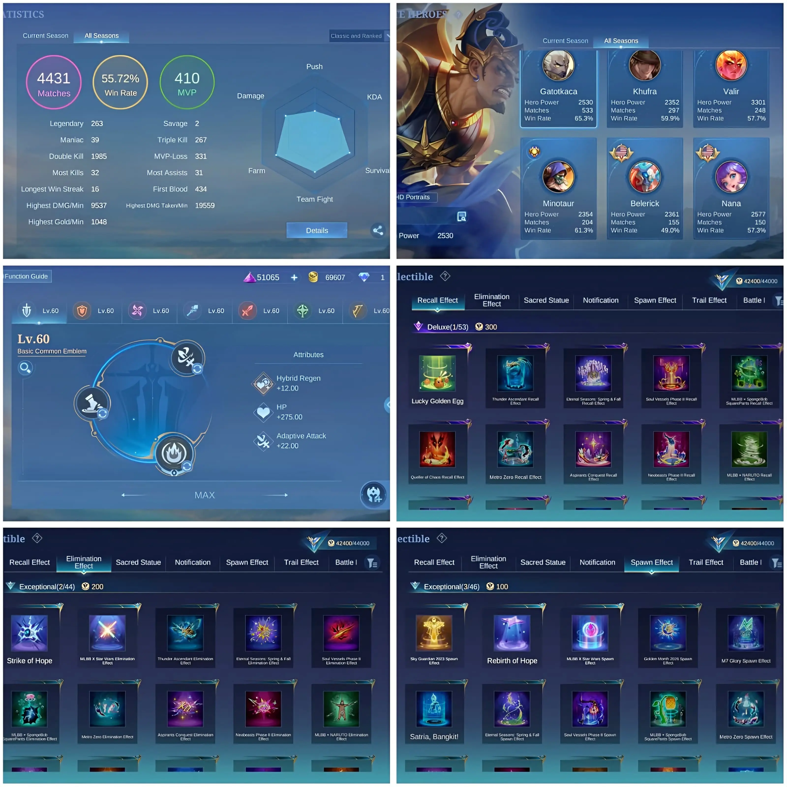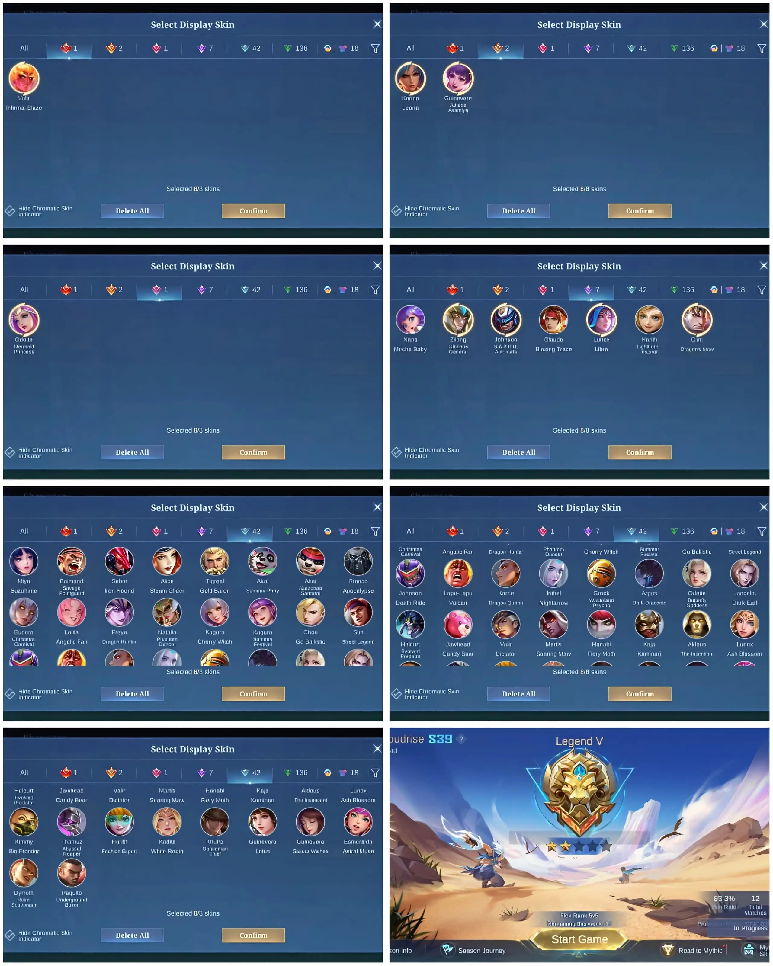[IOS/ANDROID] CEL LVL 62 | 131 HEROES | 207 SKINS | MAX EMBLEMS | VALIR LEGEND ⸱ 2 KOF GUINEVERE KARINA ⸱ ODETTE MERMAID ⸱ CLINT MYTHIC ⸱ LUNOX ZODIAC