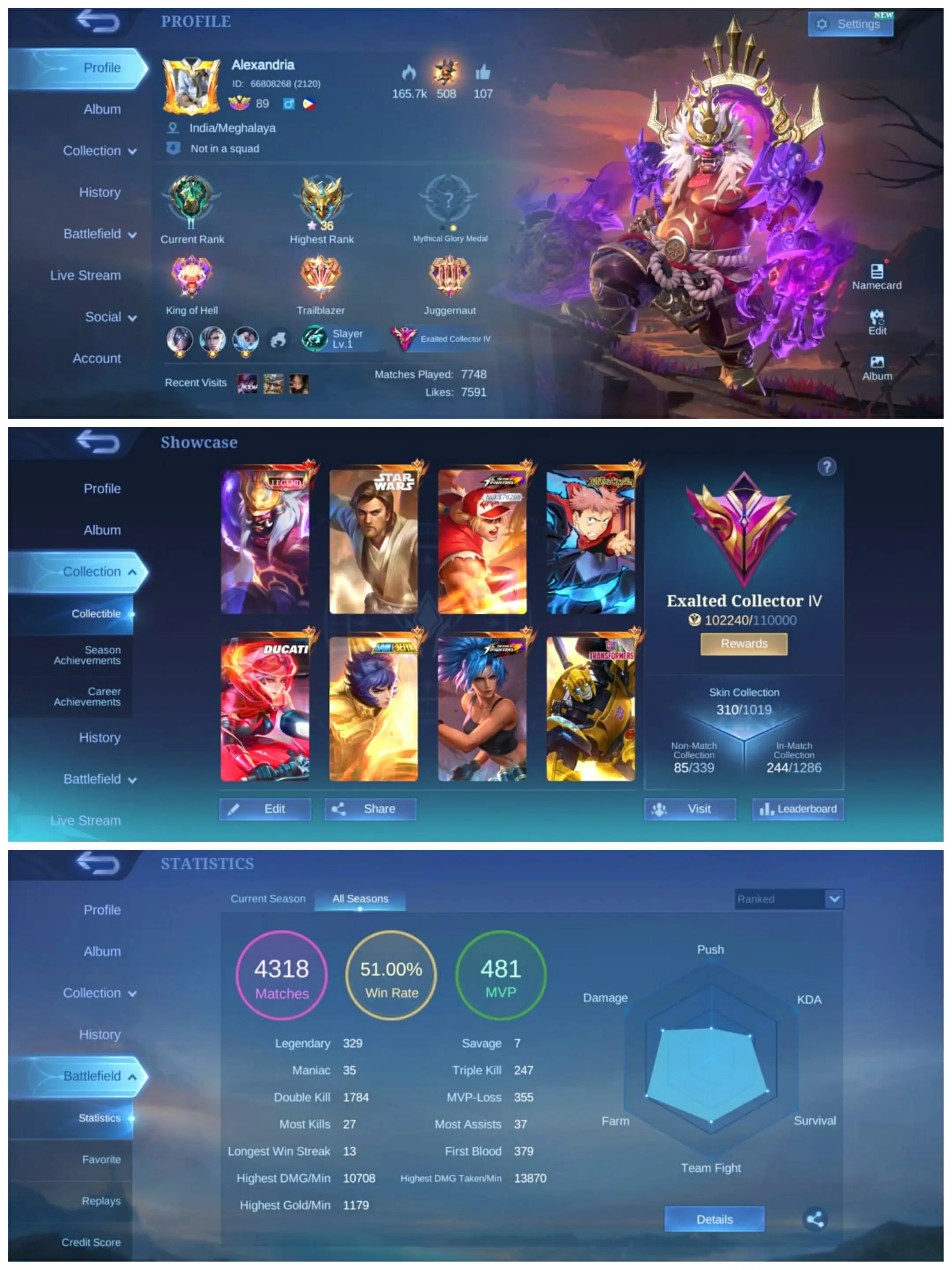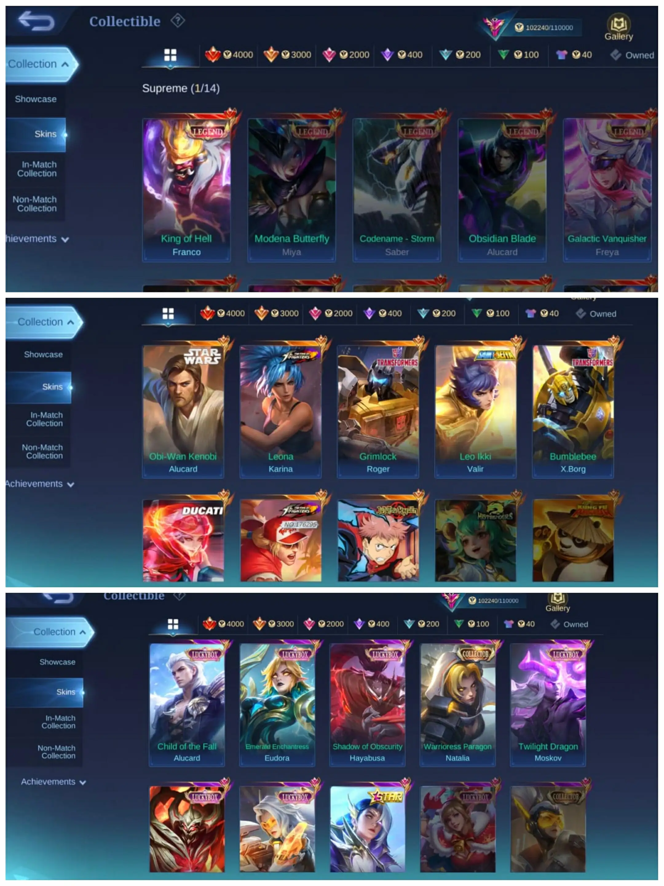 Level: 89🔰Skin: 310🔰Hero:130🔰Win Rate:51%🔰Legend Franco,Obi-Wan Kenobi,Leo lkki🔰 Lots of Old Skin and Old Heros🔰Full Access[FAST DELIVERY]