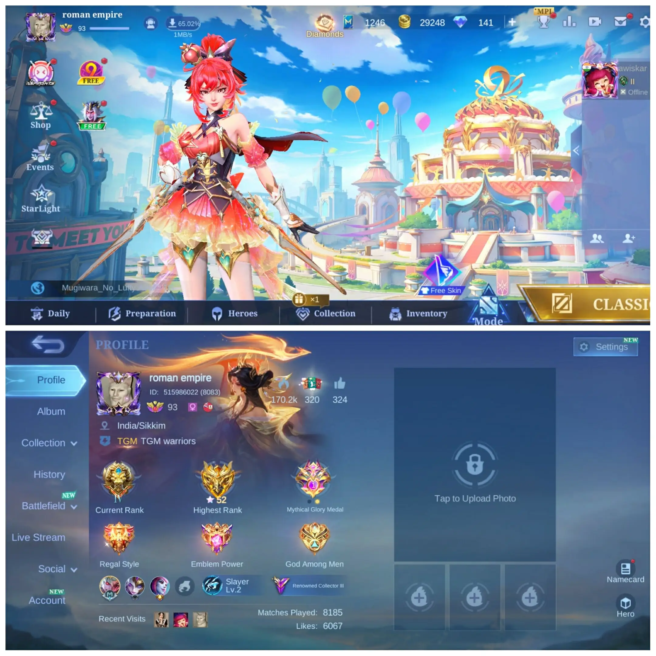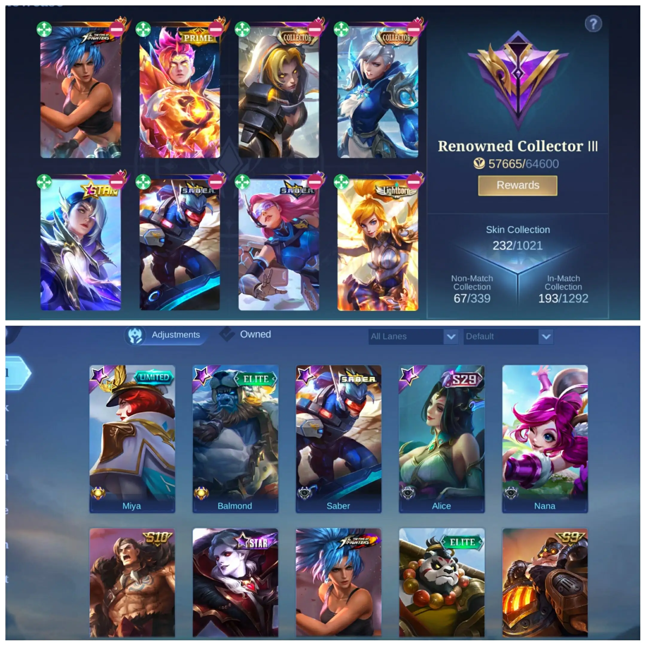 Level: 93🔰Skin: 232🔰141 Diamonds💎Hero:127🔰Win Rate:50%🔰Claude prime,Silvana collector,Lesley annual Star,84 magic core,Highest Rank 52🔰Full Access[FAST DELIVERY]