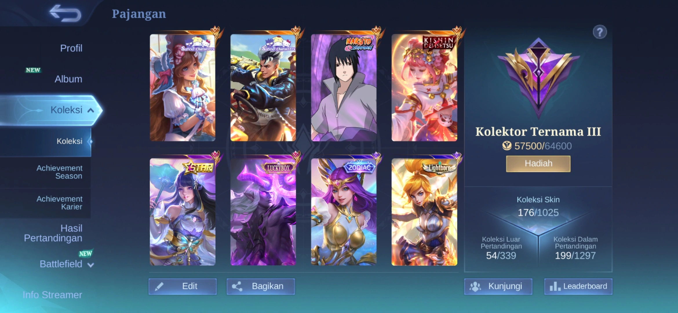 MB930|LV65|HERO 89|SKIN 176|RENOWNED COLLECTOR 3|SASUKE SUYOU|ANGELA KISHIN DENSETSU|KARINA KOF|CLAUDE, FLORYN SANRIO CHARACTER|KAGURA ANNUAL|MOSKOV LUCKYBOX|ODETTE ZODIAC|BADANG SEIYA|VALE GAARA|10 EPIC