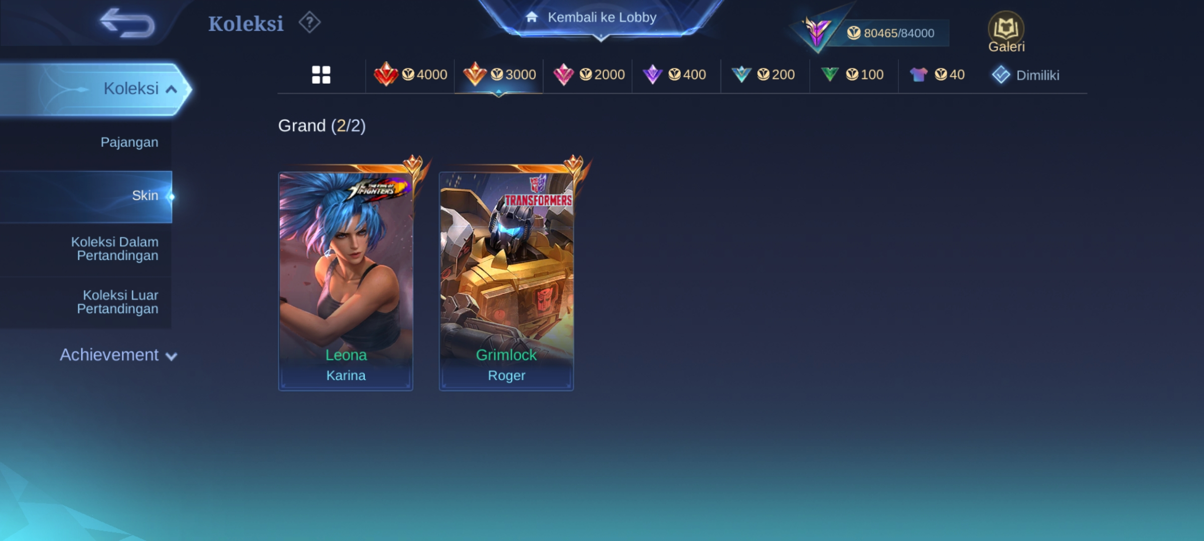 ML-113 Skins 305 [ Legend Lunox ] KOF Karina / Collector Natalia / Anual Star Hayabusa x Kagura / Luckybox Changeu