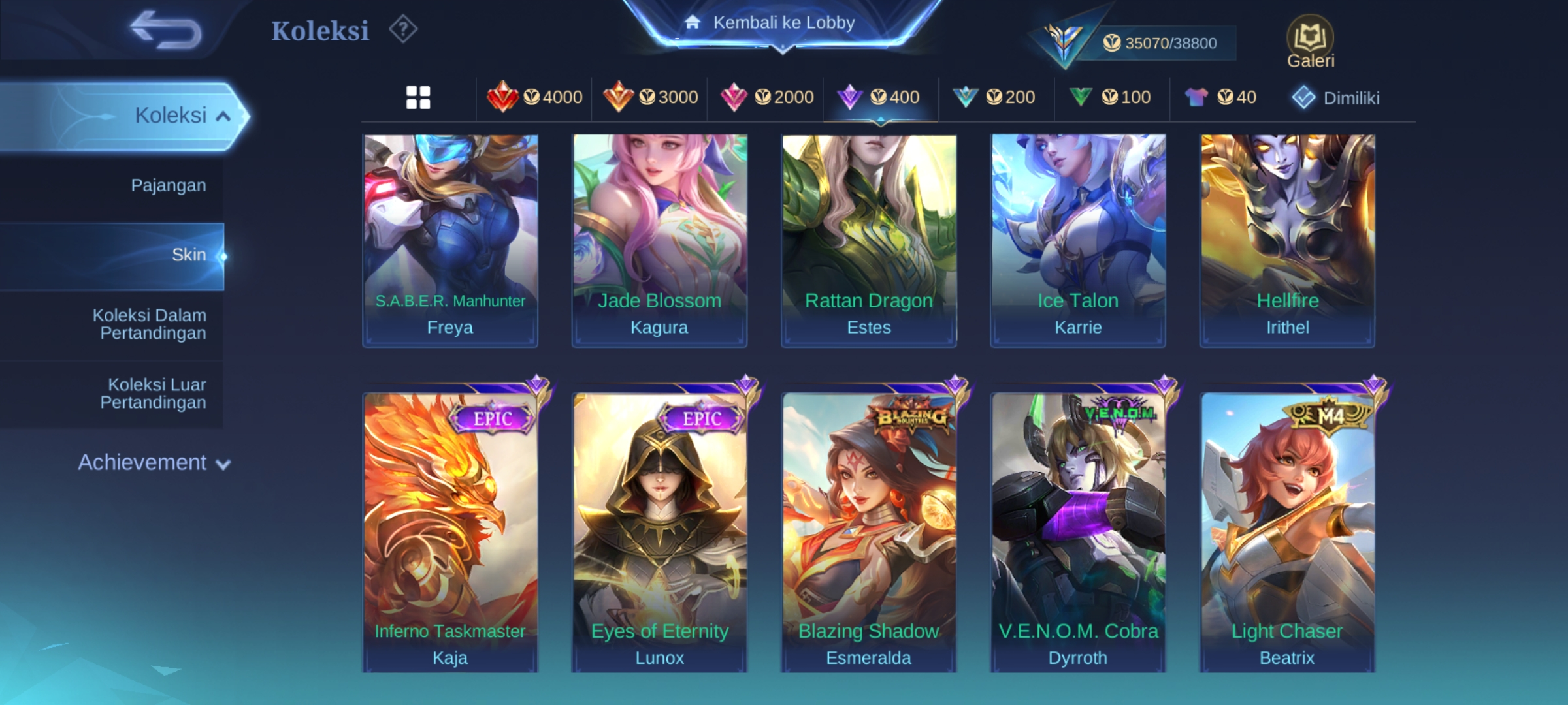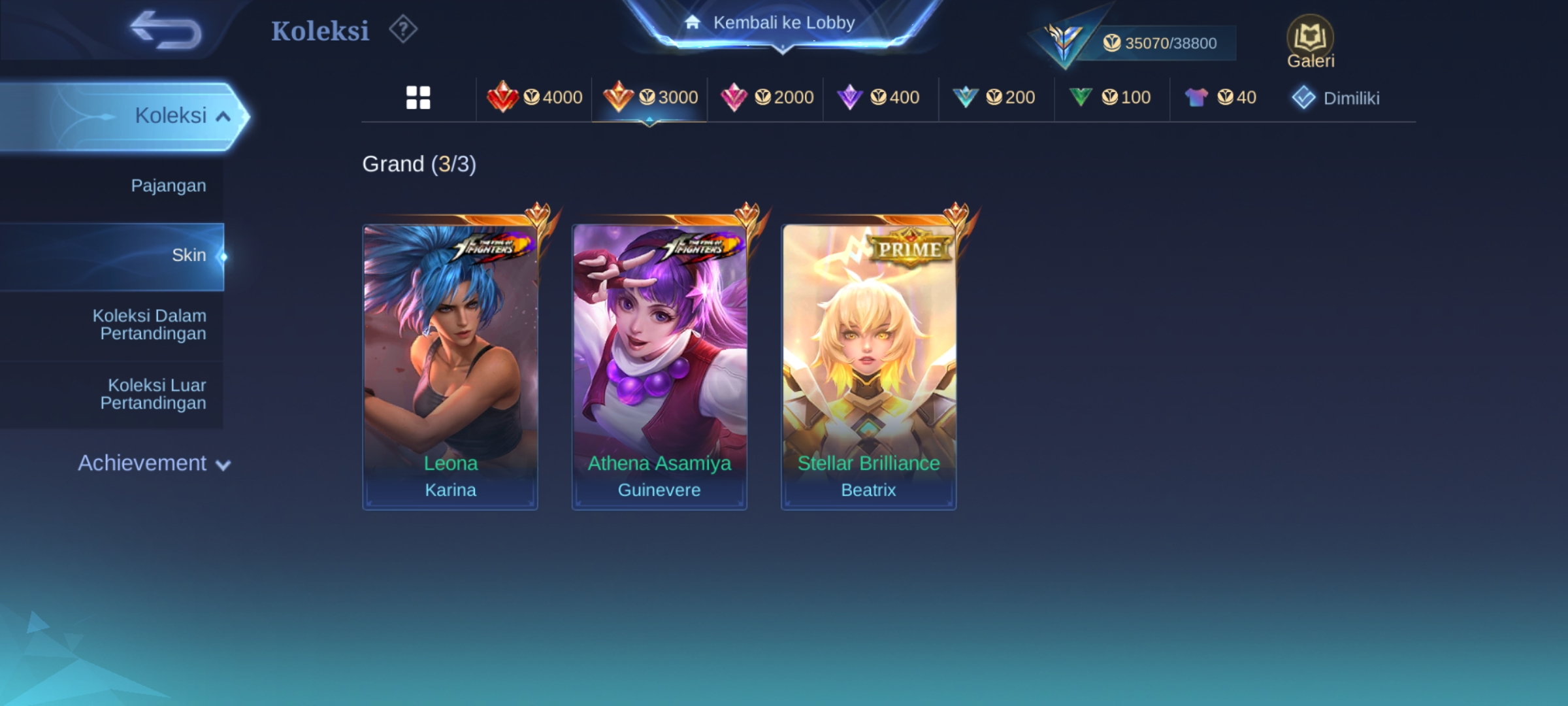 ML-116 Skins 142 [ KOF Guinevere ] Collector Valir / Prime Beatrix / KOF Karina / Star Fragment 1200 / Magic core 75