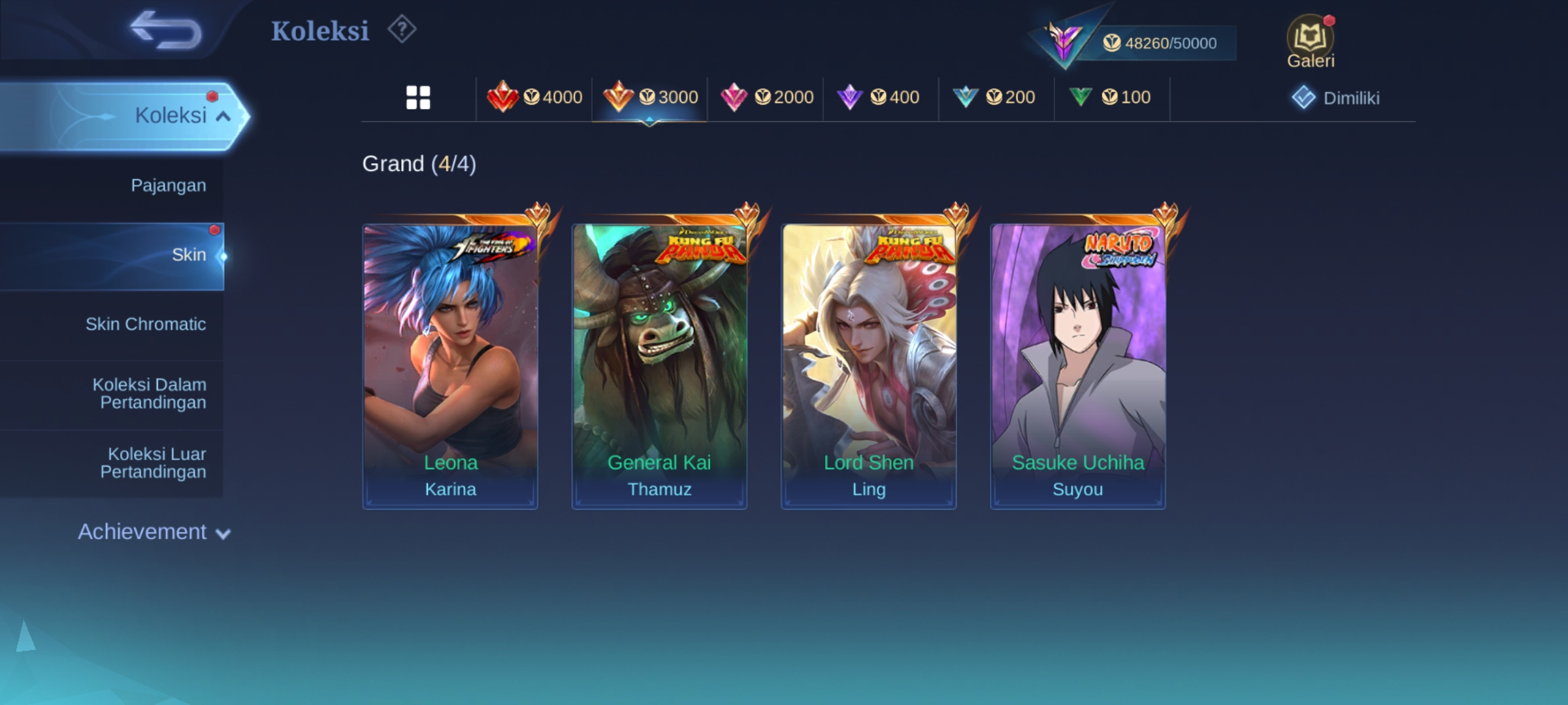 ML-385 Skins 156 [ Magic Core 77 ] Ex Immortal 126 / Sasuke Suyou / Gaara Vale / Ling Lord Shen / Thamus General Kai /KOF Karina