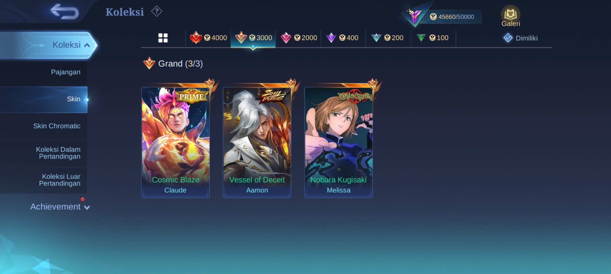 ML-425 Skins 143 [ Ex Immortal 131 ] Vessel Soul Aamon / Jjk Melisa Kugisaki / Luckybox Hayabusa / Anual Lesley /Champions Brody