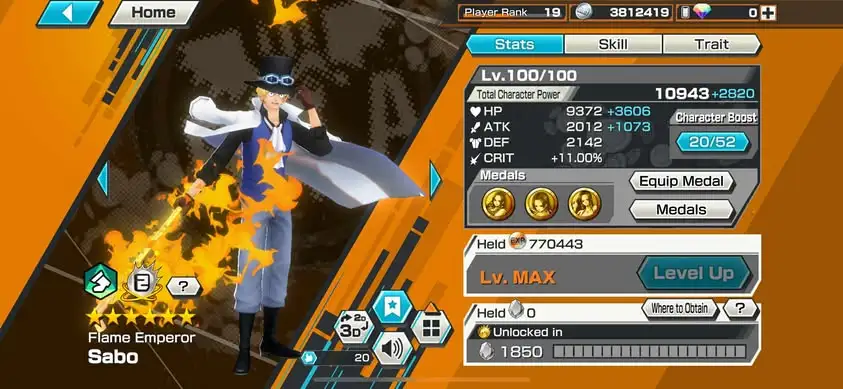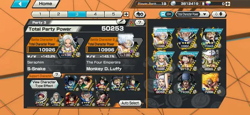 [3325][IOS+ANDROID] 9 EX META / Luffy Light + Kuzan + S-Snake + Garp + Sabo + Whitebeard + Luffy Blue + Yamato , Good Medal , Solo Fresh , Support 147