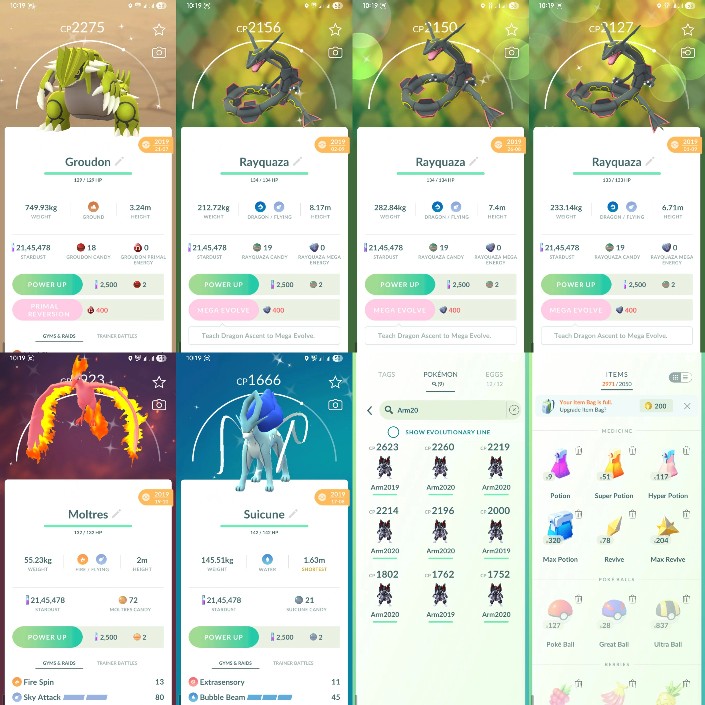 [2M+DUST]-[9*ARMORED MEWTWO (3*2019), 2019*SHINY (3*RAYQUAZA, GROUDON, MOLTRES, SUICUNE), 600*OLD YEAR MONS] 429+SHINY | 280+LEGENDRY | NO NAME CHANGE