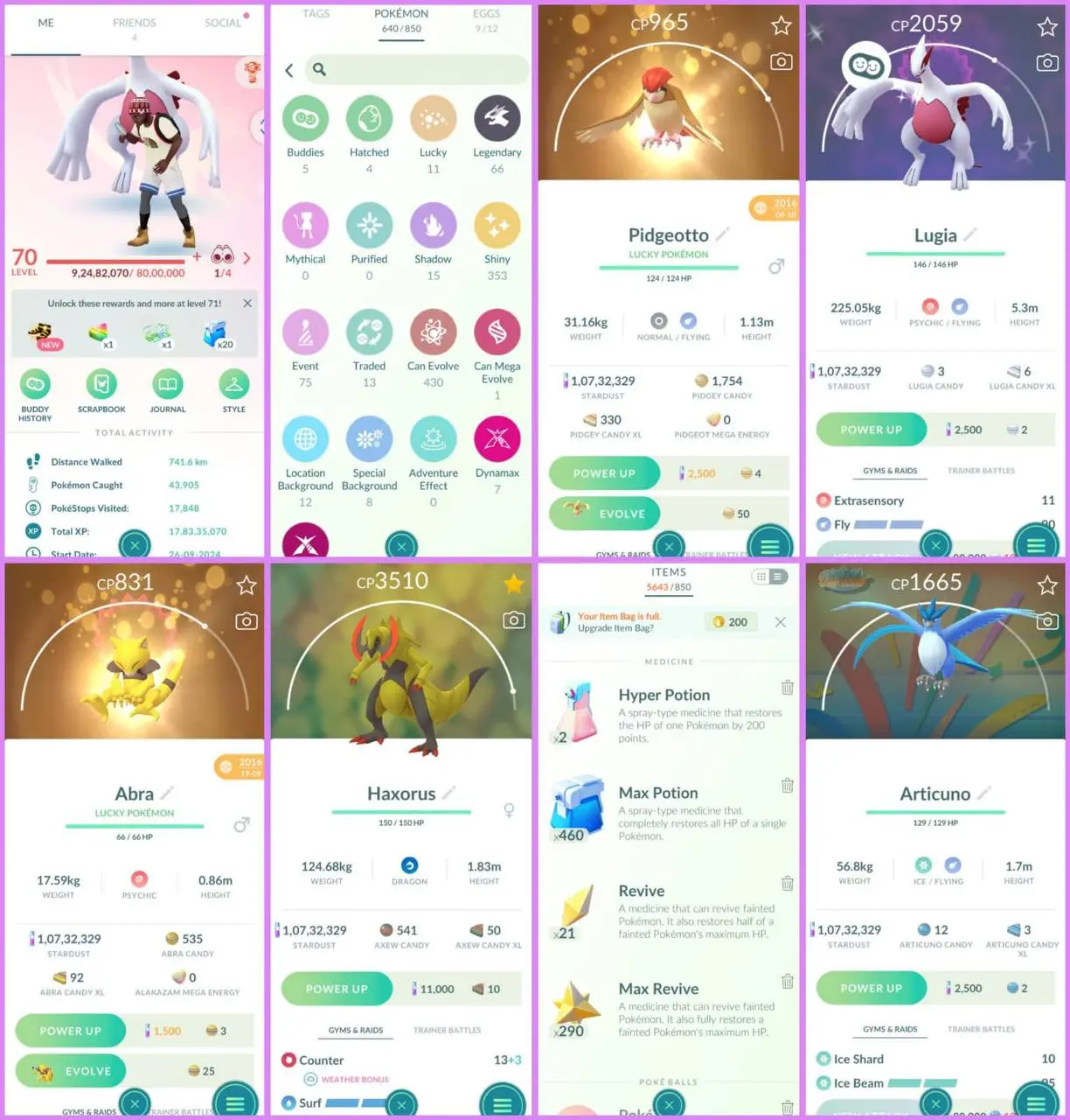 LEVEL 70(VALOR)💎640/850 Pokemon💎353 Shiny💎Shiny Lugia💎Shiny Salamance💎8 Special Background💎Name Change Available💎Instant Delivery🚚