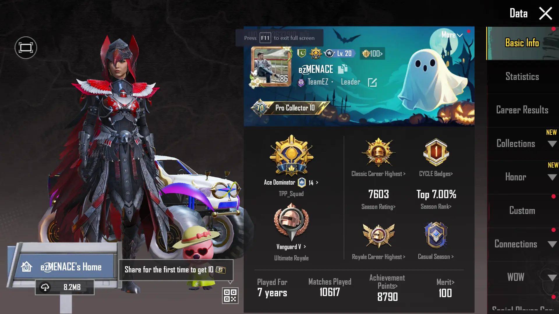Level 86 + 70 Collection Level✔️Blood Raven X Suit 4 Star✔️ M416 Silver Guru Max Level 7 ✔️ AKM Glacier Level 7 Maxed ✔️ C7S19 Conqueror ✔️150+ Mythics ✔️38 Upgradeable Skins ✔️ 340 Gun Skins ✔️Dodge Charger Dacia ✔️ Many More Read Desp ✔️