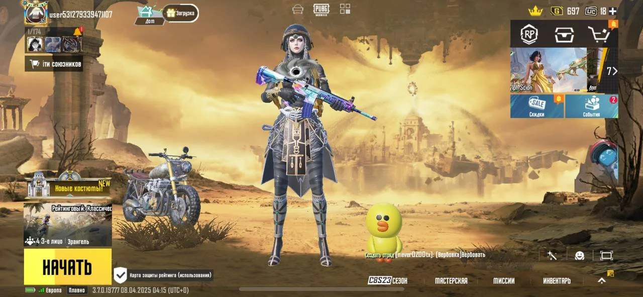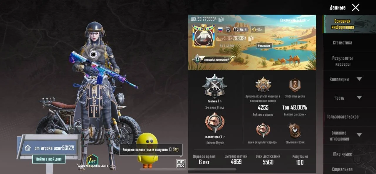 PGM184 //Level 65 Rank Platinum 25 mythical costumes, including the x costume ( 2 stars ), 7 levelable weapons, 1 kill chat
