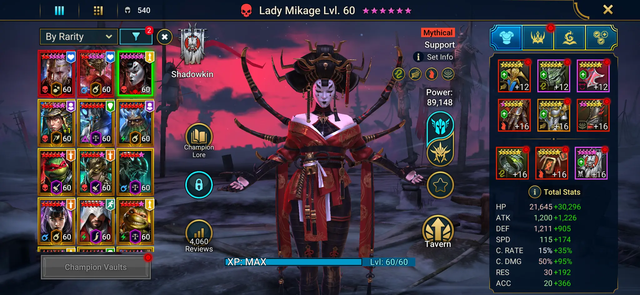 [3 Mythical Champions][5.23M] Lady Mikage,Frolni,Embrys + 86 LEGENDARY (Leonardo+Donnie+Raph+Mich,Tormin(6*)+Hilvi,Chalco,Georgid,Lamasu,Ursuga,Firrol(6*),Harima+1,Predator,Victor x2,Trunda,Othorion x2,Basim,Gnut,Pallas...) + 1k UNM + 25 SD/25 SHOGUN AUTO