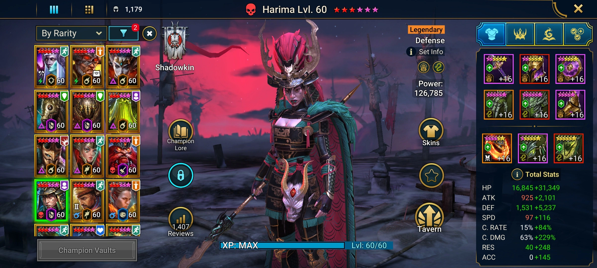 [5 Mythical Champions][22.96M] Lady Mikage,Ashnar,Mezomel,Embrys,Karnage + 204 LEGENDARY (Marius,Taras(5*)+Marichka(5*),Siphi(5*)+Rotos(5*)/x2,Acrizia+Gnut x2,Odin,Graazur,Arb 400,Nekhret,Chalco,Warlord,Leo(5*)...) + 1k UNM + 1k NM HYDRA + RTA AVATAR