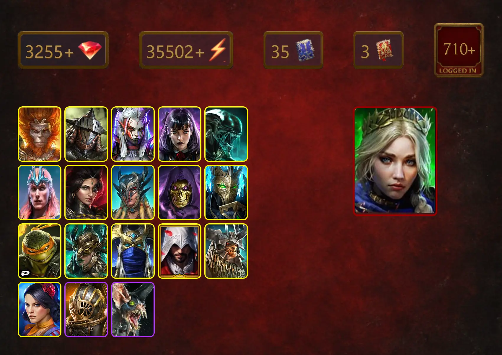[STARTER]Kalvalax+Joan the Luminant+Wukong+Rathalos+Visix+Alice+Xenomorph+Loki+Adelyn+Scyl+Skeletor+Michelangelo+37Epics