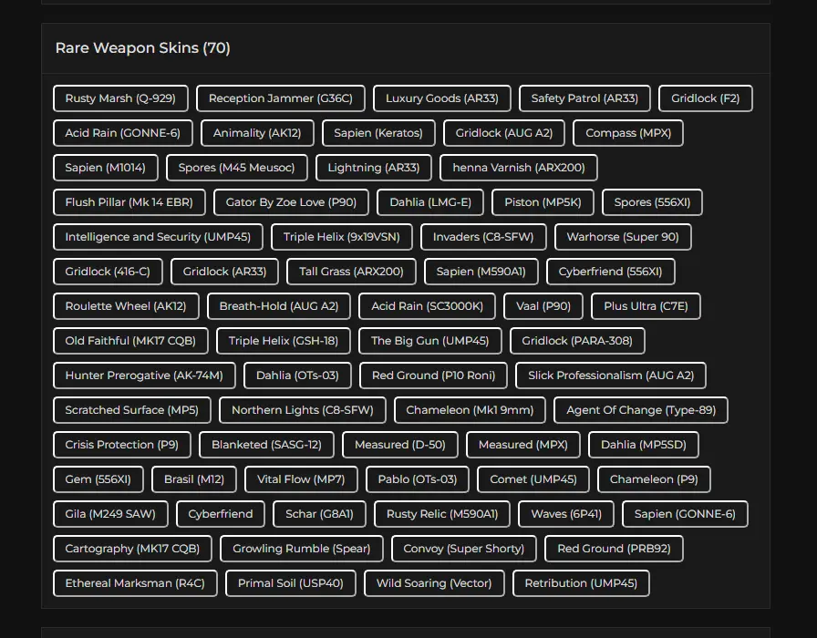 【PC/PSN/XBOX】236 Skins | 16 Black Ice | 7 Seasonals | 5 ProLeague | 10 Universals | 192 LVL