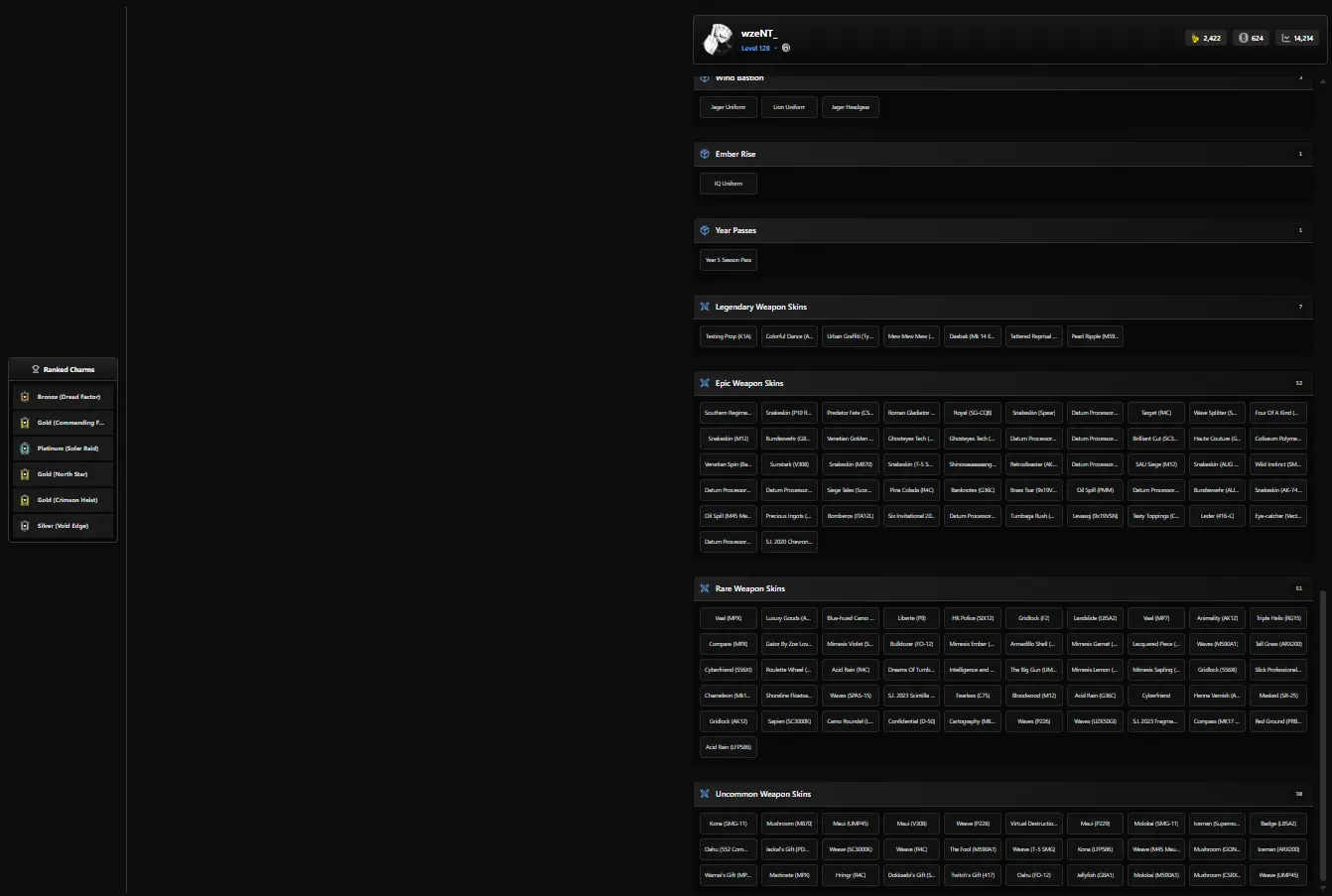 🎮 Rainbow Six Siege | PC/PSN/XBOX | ⚡ Level 128 | 🎭 206 Skins | ❄️ 9x Black Ice | 🌸 Seasonals (7) | 🌐 Universals (5) | 🏅 Pro Leagues (Old) 2 | 👑 Elites (1) | ✨ 1x Platinum + 3x Gold | 🔐 Full Access | 🏆 Ranked Ready