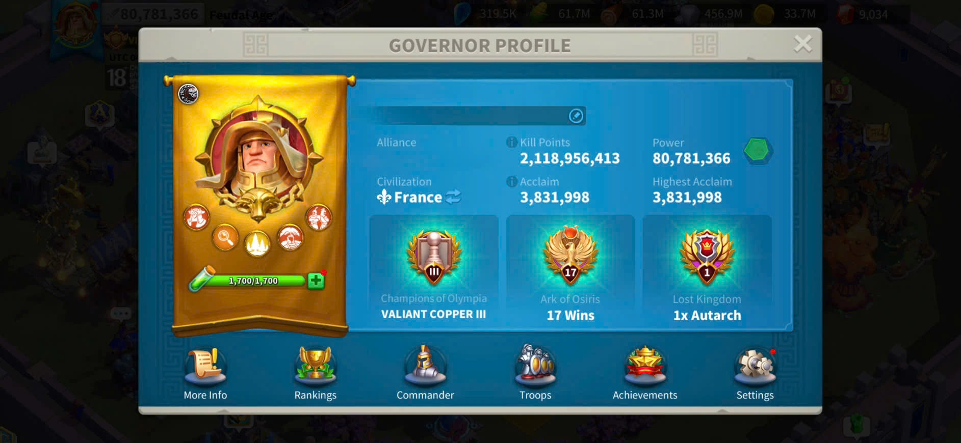 ROK2329: 80M ⸱ Vip 16 ⸱ 21 Commanders ⸱ 12 Passport ⸱ 3M3 Credit ⸱ 9k Gems ⸱ 3 Skin house ⸱ 1 Farms