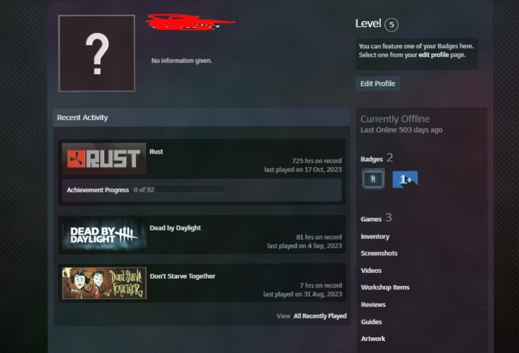 8 Years old Steam+5 LVL+RUST with 700+ AFK HOURS+Don't Starve Together Game+Full Access+Instant Delivery 24/7 #LOT-165484