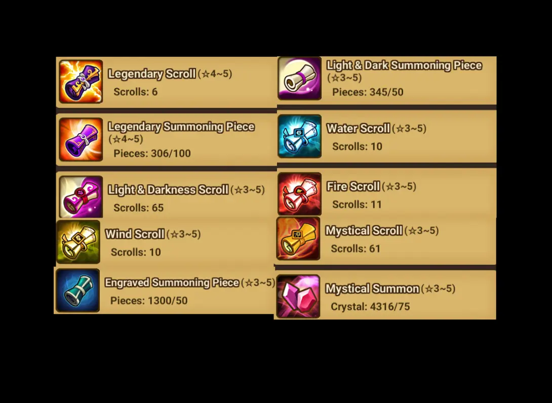 🟠Global ⸱ 65 LD Scrolls + 100 Scrolls + 4316 Crystals + 10 Nat5 + Woosa + Psamathe + Bastet + Beth + Helena + Leo + Camilla +R