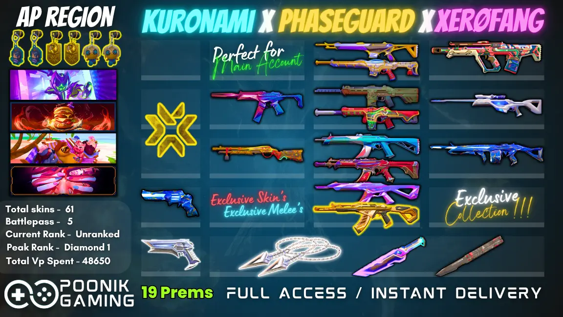 🎯 61 SKINS ⸱ AP REGION | 📹 VIDEO: imgur.com/a/iVXDzlt | KURONAMI, PHASEUGUARD, XEROFANG, REAVER, GLITCHPOP, XENOHUNTER, ONI, PRIME & MANY MORE! [V749]