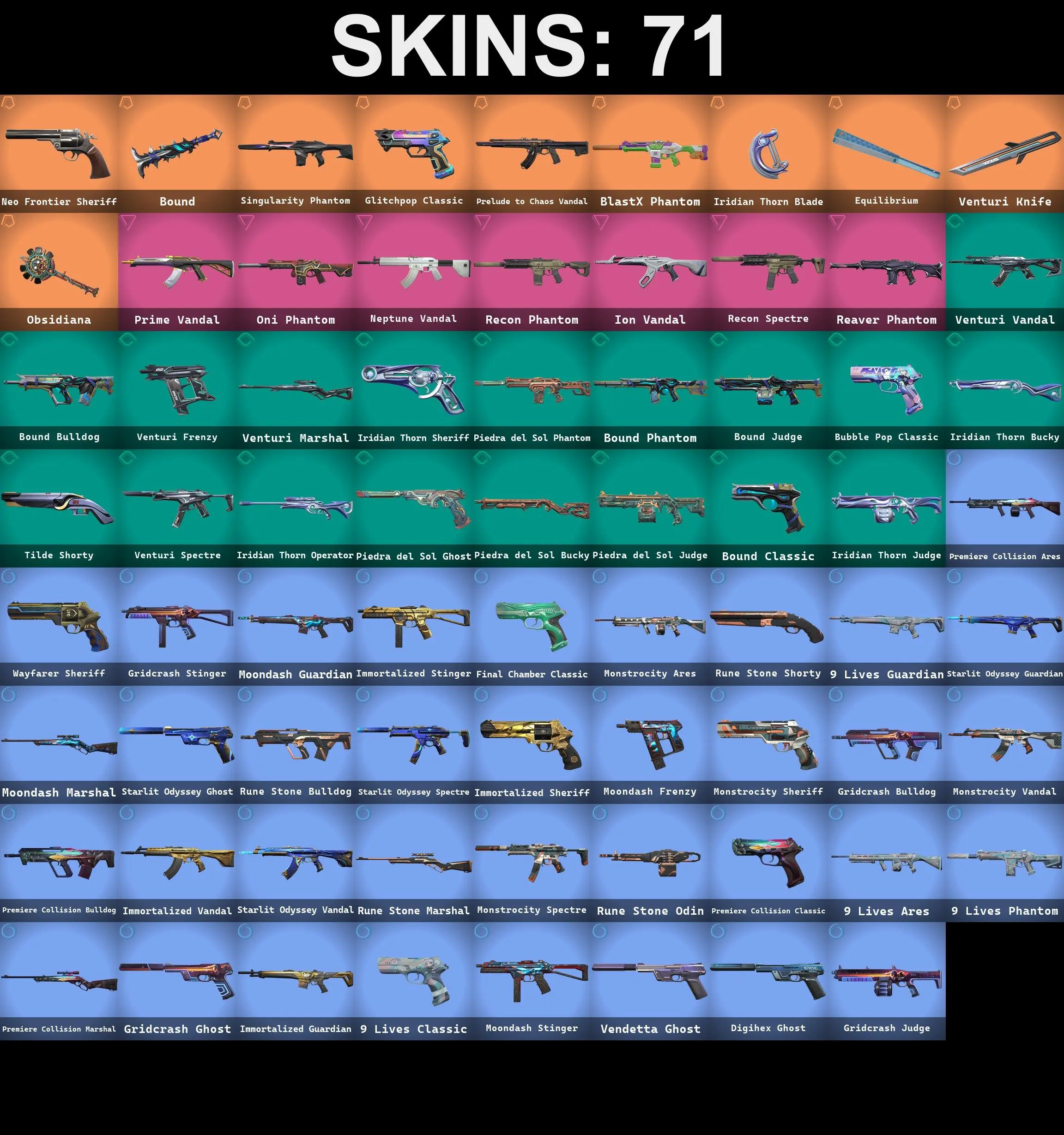 ❤️ 71 SKINS ❤️ 5 KNIFE ❤️ NEO FRONTIER SHERIFF ❤️ GLITCHPOP CLASSIC ❤️ REAVER PHANTOM ❤️ PRIME VANDAL ❤️ ION VANDAL ❤️ PREMIERE COLLISION BULLDOG ❤️ PREMIERE COLLISION MARSHAL ❤️ PREMIERE COLLISION ARES