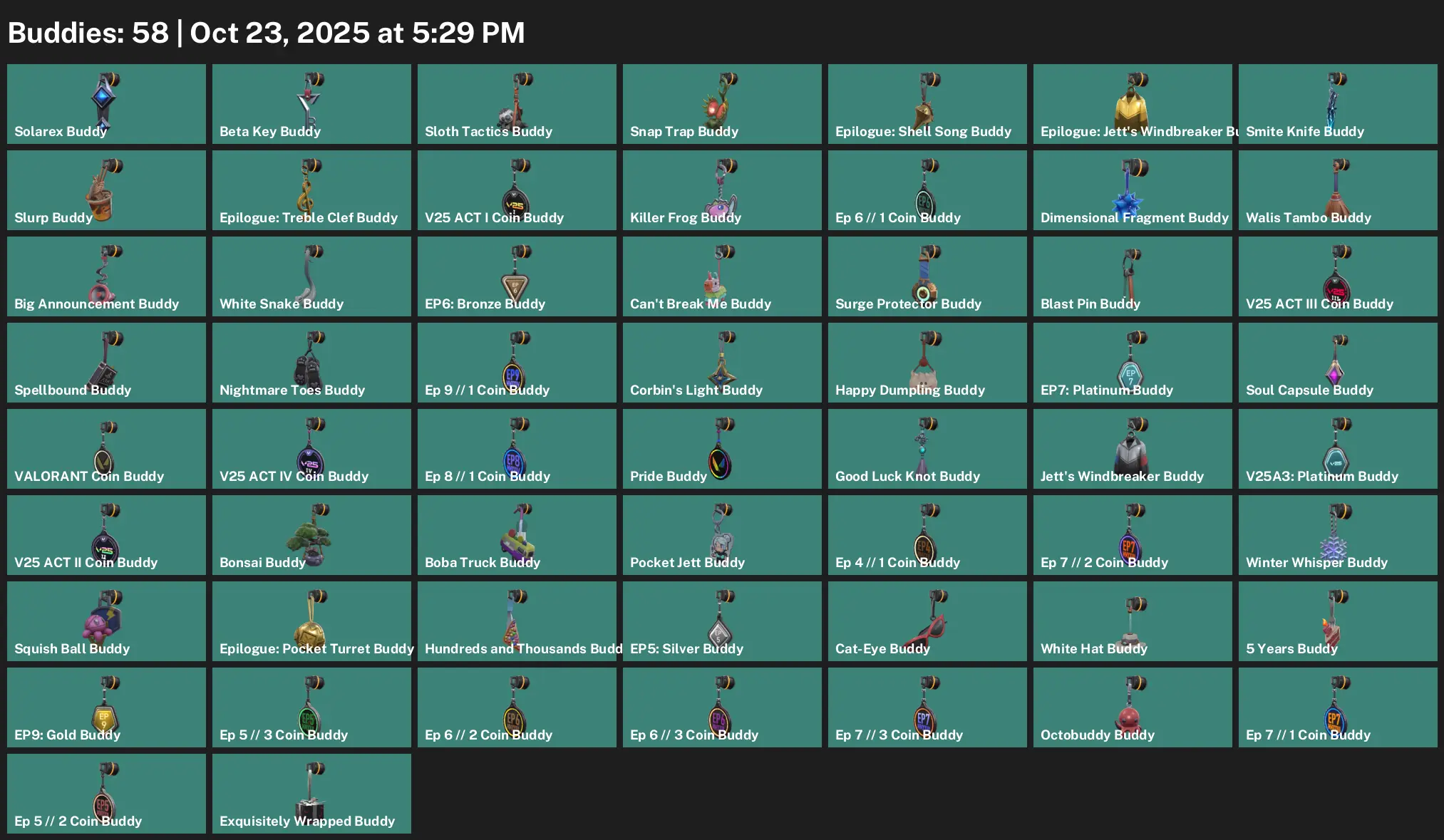 🪀 AP ⚾️ Silver 2 🛻 22 Skins 🍶 210 VP 🫛 21 Agents 🫴 Value: 6200 VP 🕯 Solarex Relic 😦 Reaver Vandal 🩲 Neptune Vandal 🤙 Prime//2.0 Phantom 🧋 Solarex Sheriff 🥺 Byteshift Ghost