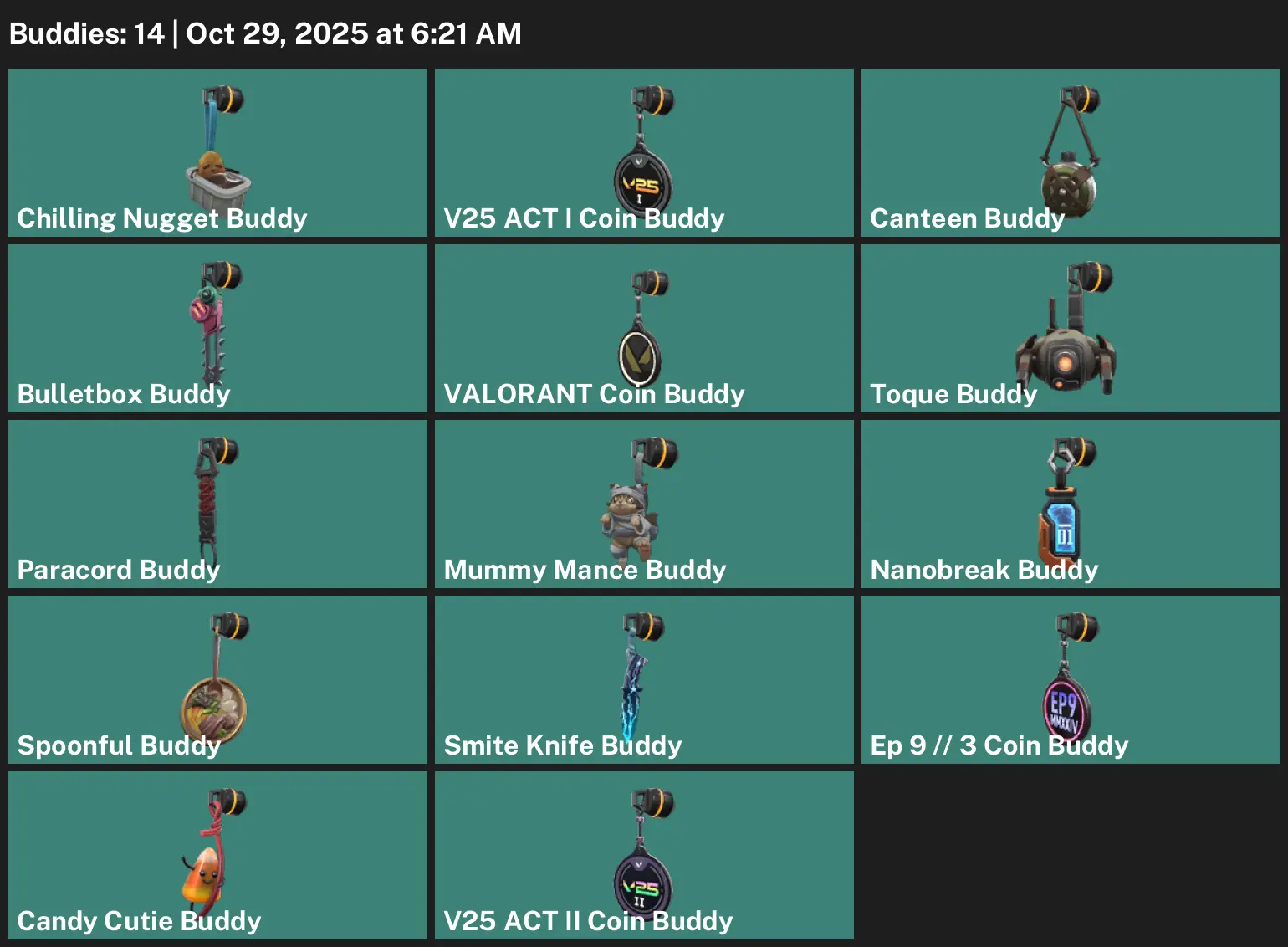 📅 AP 🤼♂️ Unranked 🧲 14 Skins 🌲 772 VP 👠 6 Agents 👗 Value: 1775 VP 🫚 Torque Coiler 🏡 Forsaken Vandal 🔬 Torque Spectre 😙 Torque Vandal 🦣 Torque Operator 📎 Torque Classic