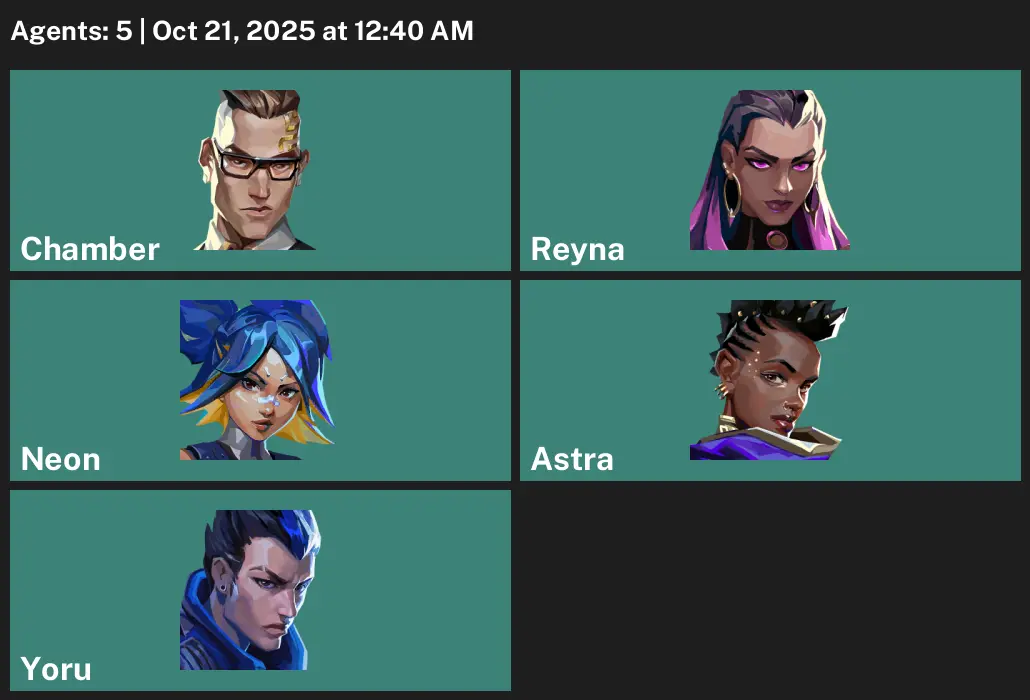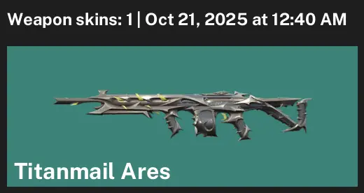 🦾 EU 💉 Unranked 🦤 1 Skins 🍔 525 VP 😒 5 Agents 🎃 Value: 1275 VP 📻 Titanmail Ares