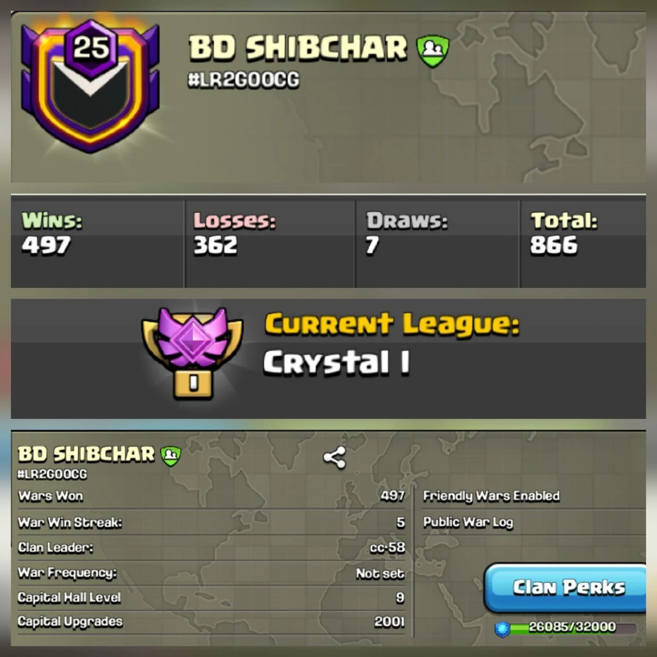 🍁LEVEL 25🍁 BD SHIBCHAR 💥 Crystal I ⭐ Capital Hall-9 ⭐ WARLOG- 497💓 CHEAP & SAFE🩷