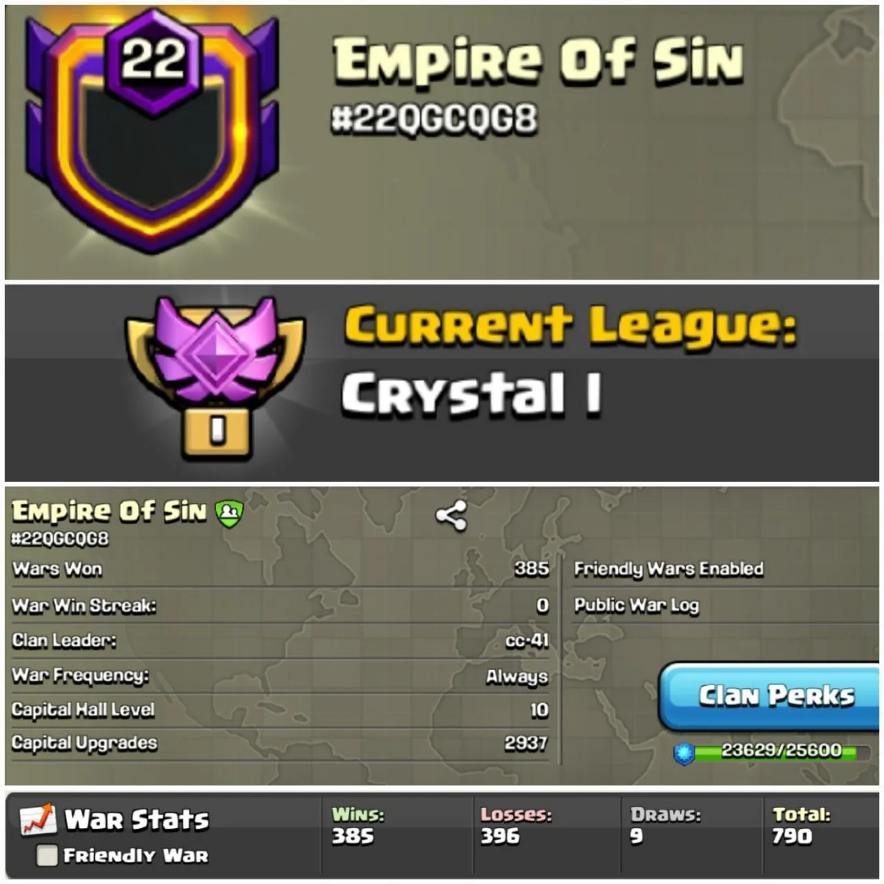 🍁LEVEL 22🍁 EMPIRE OF SIN 💥 Crystal I ⭐ Capital Hall-10 ⭐ WARLOG- 385💓 CHEAP & SAFE🩷