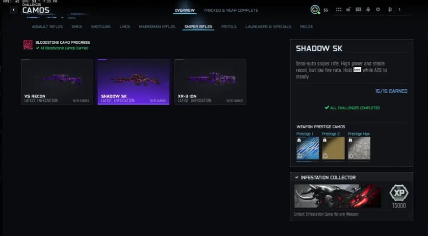 Singularity x 30 🎨BO7 ✨ 450 Camos📈 Level 55 🔫 All Weapons Unlocked🧑✈️ Multiple Operators🌐 Linkable Platforms: Steam • Battle.net • PSN • Xbox 🎮