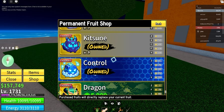 ROBLOX1025//ACCOUNT WITH 2x Mastery 2x Money Fast Boats 2x Boss Drops 4 V4 Races Level 2619