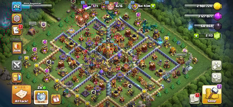 🔥 Gold 1 🏆 Hell Hounds 💥 LVL- 24 ☠️ Warlog 582-482 CC: 𝙼𝚊𝚡 10⚡