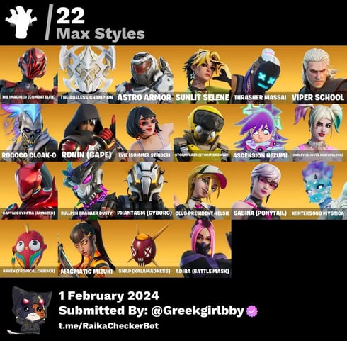 [PC/PSN/XBOX] 34 skins | Mizuki | Renzo the Destroyer | Era | Optimus Prime | Spire Assassin | Raz | Polar Peely | Lara Croft