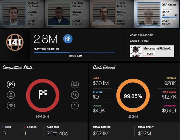 Rockstar Games | Social Club | PC | Legacy | 31.500.000$ Pure Cash | RP Level 141 | Story Mode Available | E-mail Changeable | GTA0094