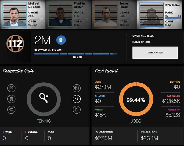 Rockstar Games | Social Club | PC | Legacy | 2.000.000$ Pure Cash | RP Level 112 | Story Mode Available | E-mail Changeable | GTA0097