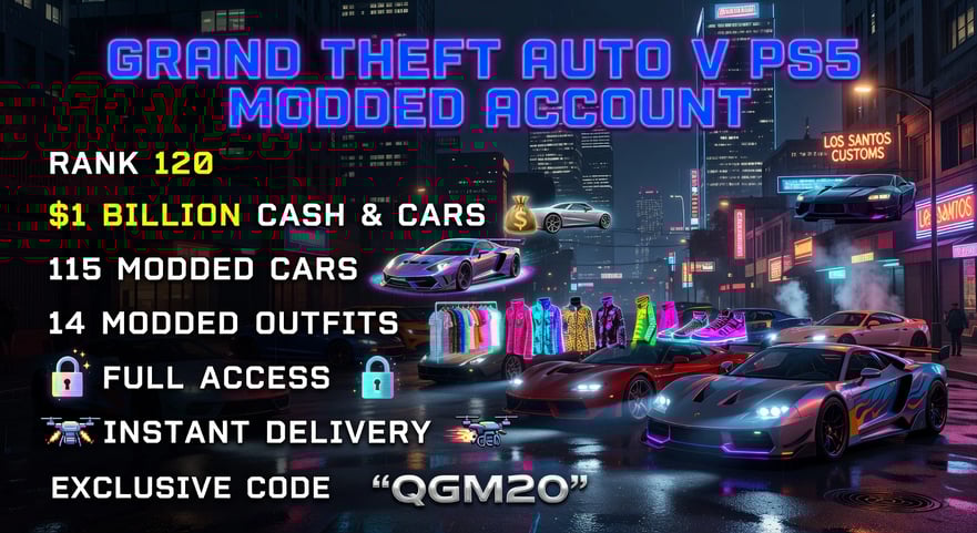 Grand Theft Auto V PS5 Modded Account | Rank 120 | $1 Billion Cash & Cars | 115 Modded Cars | 14 Modded Outfits | Full Access | Instant Delivery | QGM20