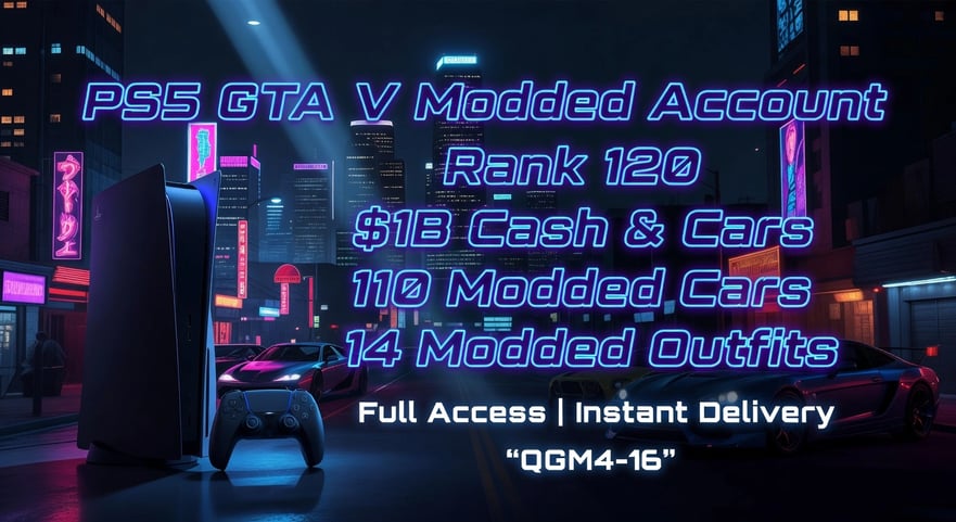 PS5 GTA V Modded Account | Rank 120 | $1B Cash & Cars | 110 Modded Cars | 14 Modded Outfits | Full Access | Instant Delivery | QGM4-16