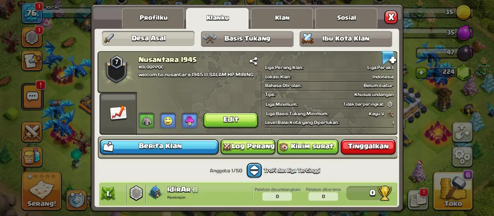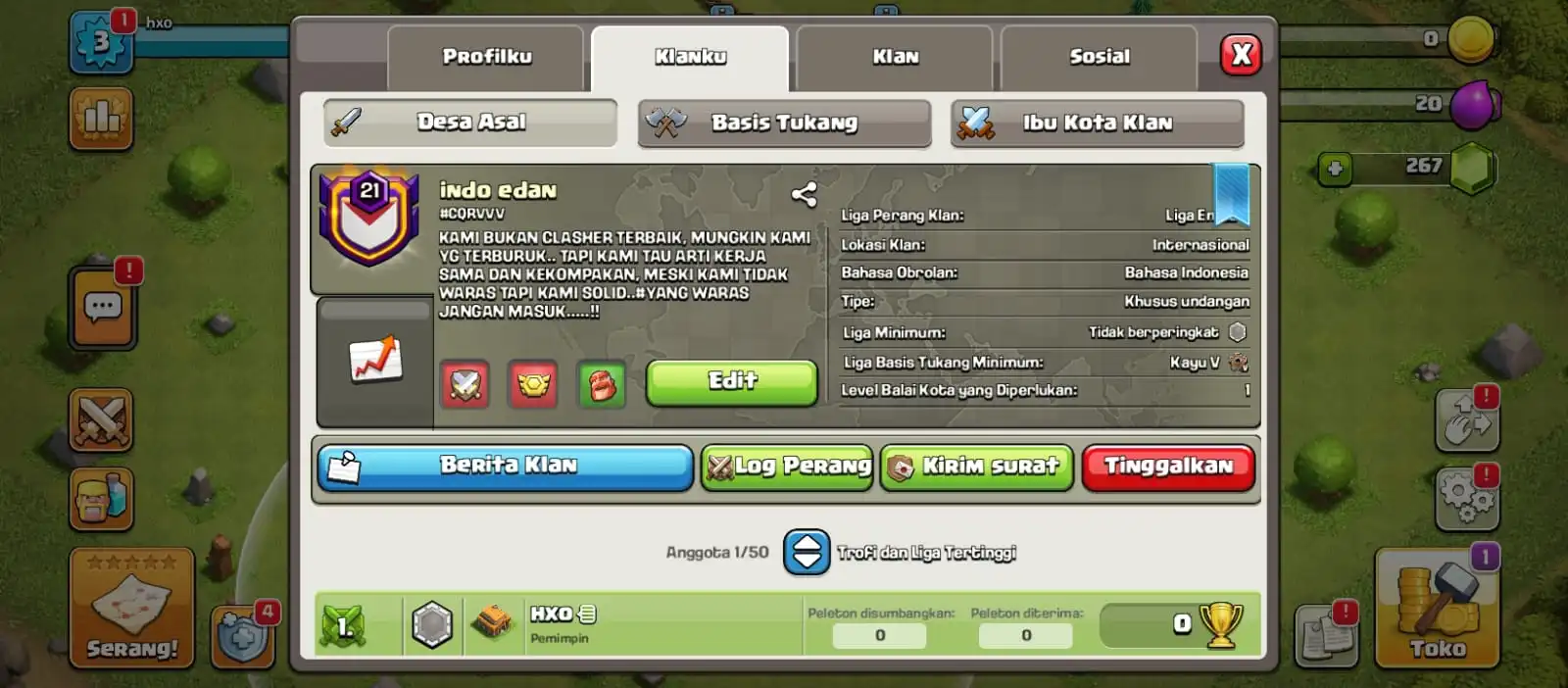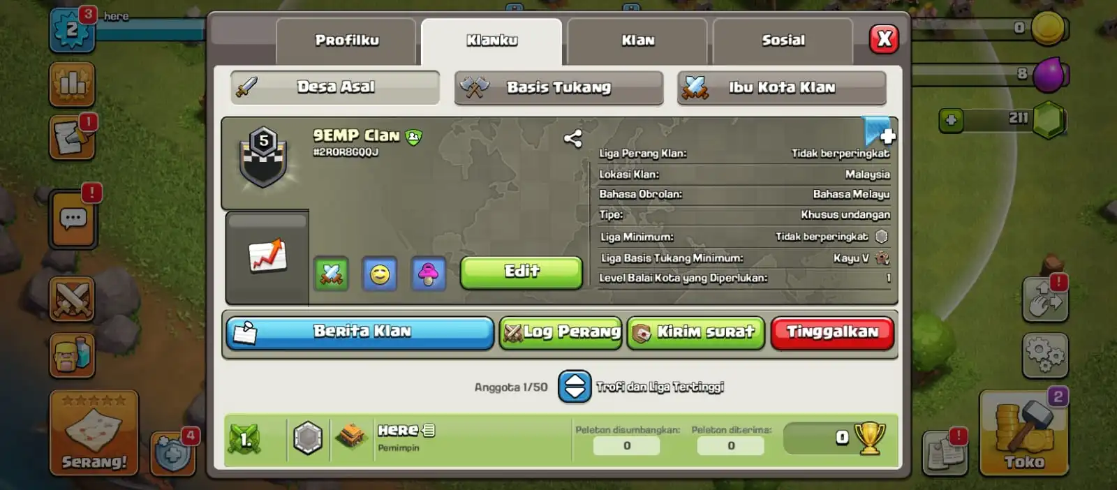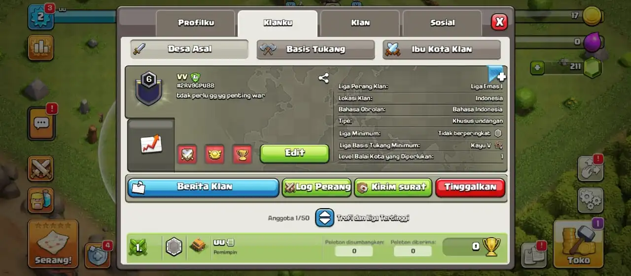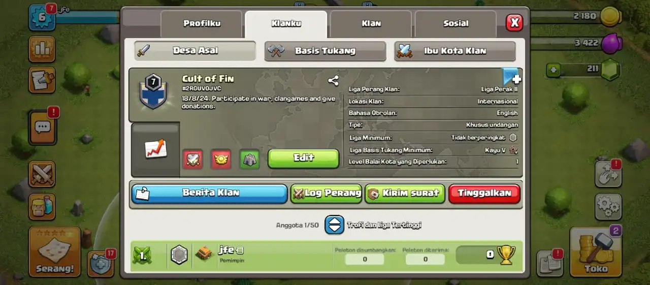 COC CLAN LEVEL 1 AND YOU CA REQ NAME