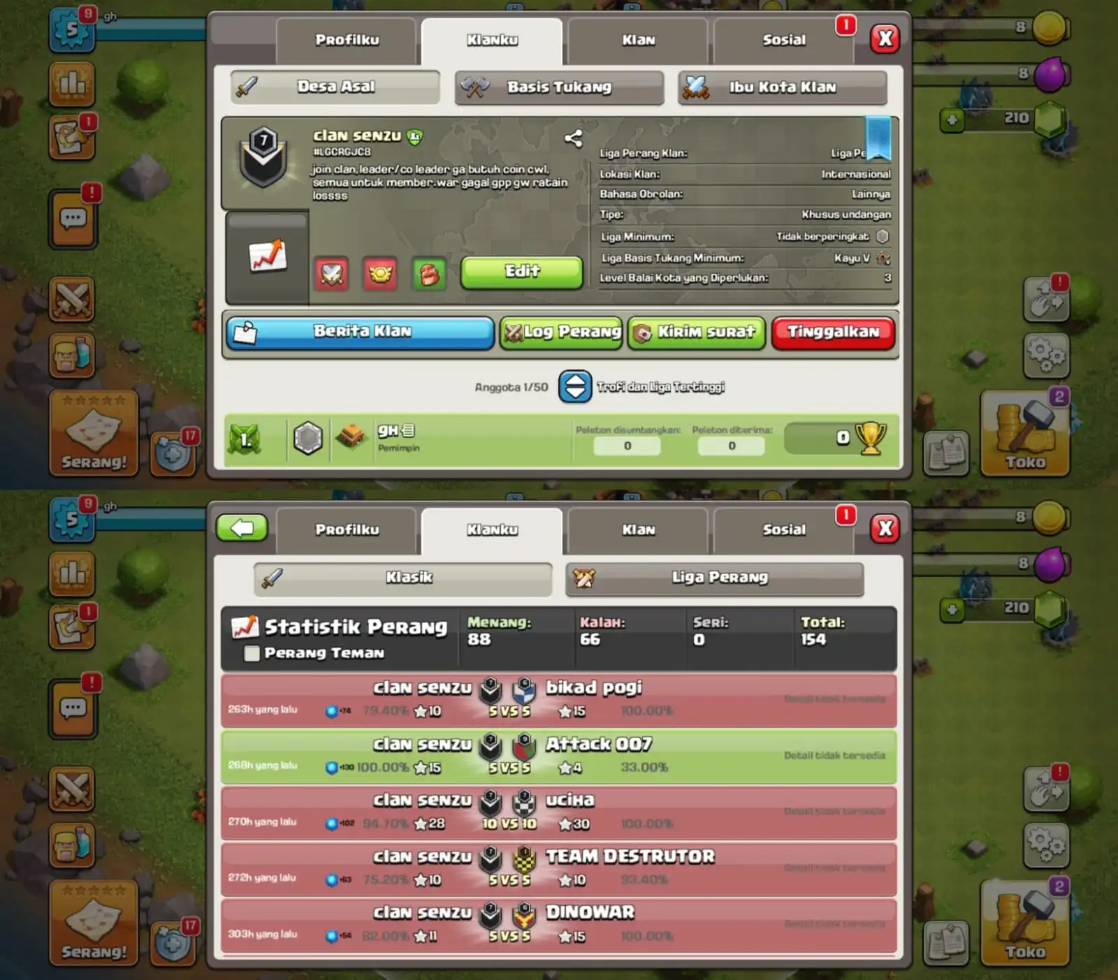 COC CLAN LEVEL 7 GOOD WARLOG AND NICKNAME (clan senzu)