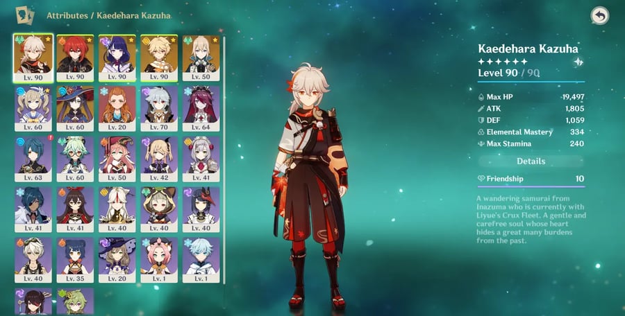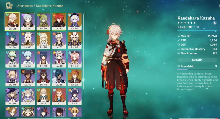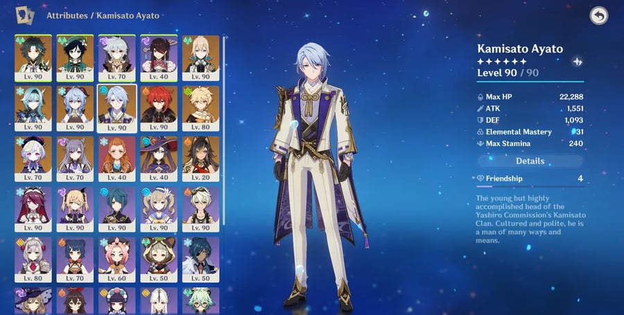 💜EU💜Skyward Spine |5 stars* Weapons💜34 CHARACTERS💜AR. 50💜430 PRIMOGEM 90LVL⭐Kaedehara Kazuha(C1)🔥Raiden Shogun⭐Kamisato Ayato🔥Kamisato Ayaka⭐Jean🔥Dehya
