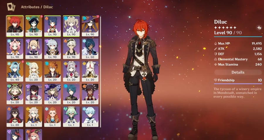 💜NA💜Aquila Favonia |5 stars* Weapons💜27 CHARACTERS💜AR. 55💜 90LVL⭐Diluc(C1)🔥Raiden Shogun⭐Kaedehara Kazuha🔥Mona⭐Jean🔥Aloy